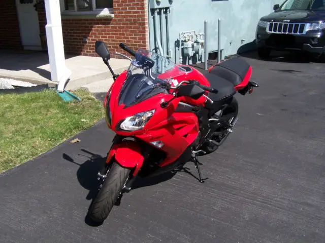 This motorcycle was purchased brand new. Due to being in the military on active duty I have not been able to ride it as much due to work hours and constant traveling. The motorcycle color is red and black with 174 original miles comes with 2 keys Kawasaki Ninja 650 Motorcycle Owner's Manual Motorcycle Safety Foundation (MSF) Riding Tips book and GAP protection that expires on 7/7/2017. The following items are also included in the purchase:
