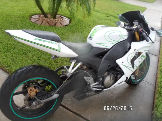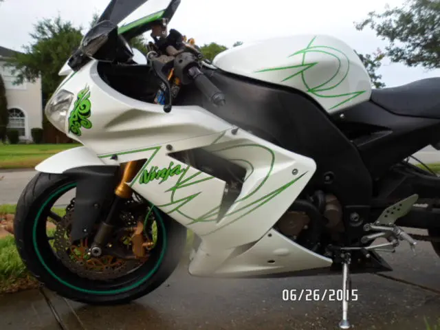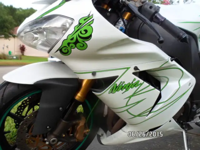New Brake LinesNew Stock ExhaustNew GP MufflerNew Front TireNew PlasticsNewReplacementBrake Pads includedNew Adjustable Height Side StandNew Mirrors with Turn Signal LightsNew Underbody Rear Turn SignalsNew Green Ground Effect LEDs controlled by dimmer switchNew Custom Painted Gas TankNew 8K HID HeadlightsFresh Oil and PlugsFresh AntifreezeExtended Swing ArmVertical TagAdjustableSeat Height throughT-Rex Lowering LinksThank you for visiting my STORE dedicated to HELPING THE HOMELESS & those LESS FORTUNATE.1 John 3:17-18 “If anyone has material possessions and sees his brother in need but has no pity on him how can the love of God be in him? Dear children let us not love with words or tongue but with actions and in truth.” (NIV)