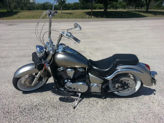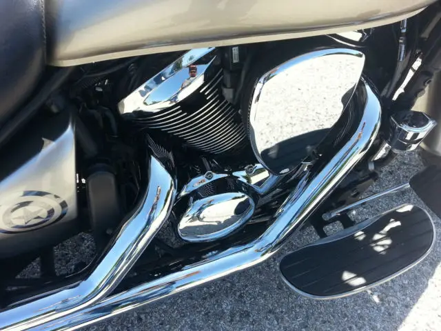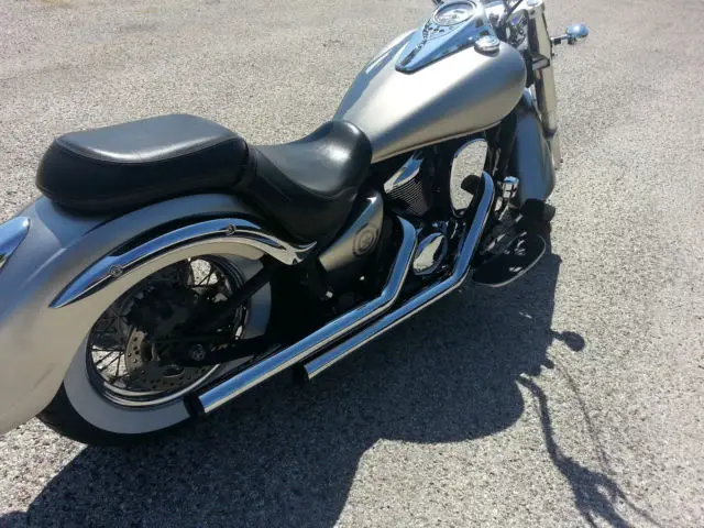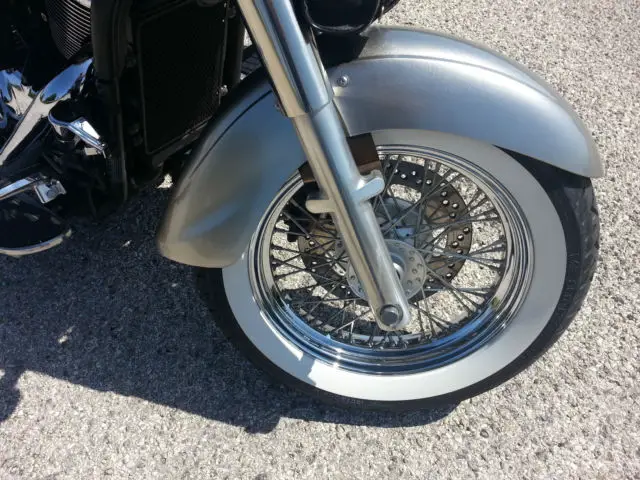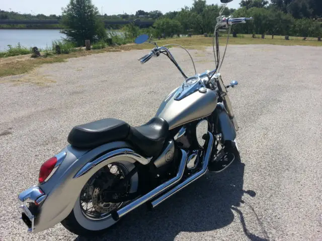 Nice Condition with lots of extras. Well taken care of with fresh oil change and recently purchased tires. Extra accessories include Cobra exhaust, arons Big Air intake, 6" ape hangers, how Chrome grips, illet mirrors, raided steel cables, ustom rear blinkers, hrome plated rear pulley, olished brake rotors, illet dash bezel, ower Commander, nd an adjustable 3" inch lowering kit. It is currently set at the maximum 3" inch drop which gives it the low lean look.It sounds great and rides fast!The only flaw on this bike is a paint scuff on the front fender where the bag has rubbed on it.