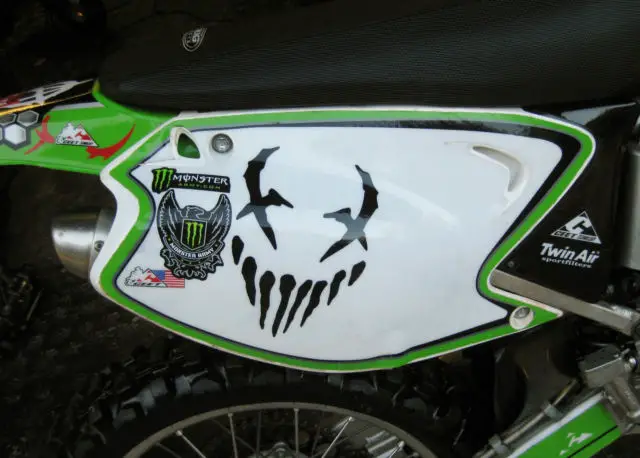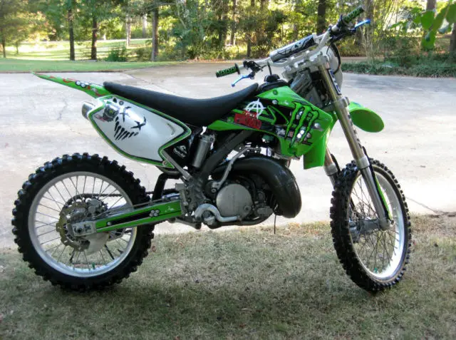This bike is in great condition. I have maintained it to the tee. Starts 1st kick, o hesitations throughout the power band, nd shifts out perfectly. You know or have heard of the power of the KX 250 2 stroke. It's awesome!!! Garage kept, leaned, nd lubed after every ride. As seen in the pictures, t is super clean. I am selling only because I purchased an 07 KX 250 2 stroke. Last year of the line. The 03 for sell actually has more power so if you are the winner, will let you ride both to compare. I also changed up the graphics this year for a change and a true Metal Mulisha MX bike. I will change the graphics for you if you want me to. Your preference. No charge, o problem.During this summer riding season I have added some new accessories and parts as follow:Renthal handlebars.Renthal rear sprocket.Renthal chain.Front and rear Dunlop MX53's.New fork and shock oil and front fork seals. No leaks.New grips.Also have the breakaway clutch and brake levers.There is more I'm sure so if you have questions, sk.Thank you and I hope you win.