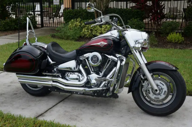 This 2005 Kawasaki Vulcan 2000 Limited has a 2053cc or 125 Cubic Inch engine. This is a limited edition which boasts the unique two toned red and black faded paint scheme and chrome wheels specific to the 2005 model year limited edition. The Corbin beetle bags are color matched to the limited paint scheme and compliment the bike perfectly and with the Corbin seat you can ride all day without any discomfort. The saddlebags are spacious and can hold all your gear with plenty of room left over. The passenger pegs have been replaced with chrome floor boards for extra comfort. The Stock rider and passenger seats are included in the sale. Vance & Hines double Slash Cut exhaust gives a deep rumble to the bike that will allow surrounding vehicles to hear you and take notice. The motorcycle is in pristine condition and has been maintained meticulously. All maintenance has been done regularly per the repair manual using Amsoil full synthetic engine oil and filters. The performance of this motorcycle is simply breath-taking to say the least. Both front and rear tires are brand new, ew spark plugs, ew fuel pump, uel filter, nd battery. The J&M CB radio, brand new motorcycle cover, EM radiator cover and Kawasaki repair manual are included in the sale. The Vulcan 2000 is equipped with the largest production V-Twin engine ever made. This is a beautiful motorcycle.