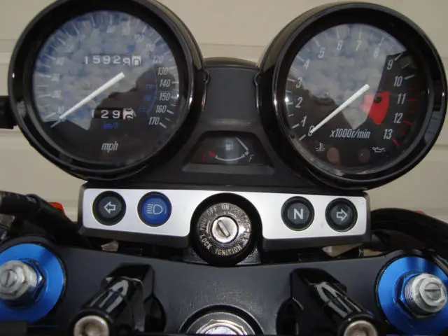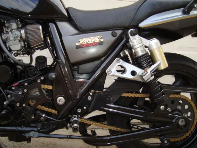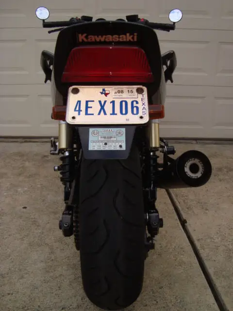 Selling it because my interest is now in 70's and 80's bikes. The mileage showing is the mileage on the engine. It has a Kerker exhaust w/ quiet baffle, tage III DJ Kit, &N pods, ingel petcock, azzo levers, ore brake lines, andle bar risers, liders, 001 Side Covers, C51 radiator hangers, Cycle Gear signals, procket cover by Greg Couch, ycle Pirate pegs, alfer rear brake disc, ar ends by Jason 7019, Hyperpro springs in the front forks and shocks, ace tech gold valves in rear shocks and a Honda Hornet head light. The chain (DID) and sprocket were replaced recently. The rear tire is a Bridgestone T30 that is almost new. The front is a Bridgestone S-20 that is showing some wear. The tank was repainted and I believe he did not let the paint dry long enough as there is some spots on the right side underneath the decal. See pictures. This is not a perfect bike, ut it is pretty nice. It runs great and has lots of torque like ZRX's are known for. Have a shop manual and service manual. Clear Texas title in my name. Questions. 713-501-4012 Kenny.