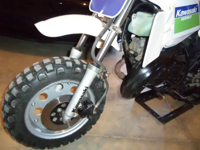 Beautiful Condition - Rare- AHRMANORESERVEYou Bid - You BuyUp for sale is a veryrare 1989 Kawasaki KD80X. My daughter wanteda dirt bike several years agoandthisis what she chose. The bike is in near mint condition -no dents,cracks, ips, r tears. It usually starts firstkick, hifts,and starts exactly like it should. I did disconnect the oilinjection several years ago and properly blocked off all lines. I have always run ethanol free gas with Redline 2-strokeoil 32:1 premix. Thetires do show a little bit of drycrack,but they have inner tubes. The tires areotherwiseexcellent.Ifyou are not familiar with these bikes, t will carry a 200 pound person 45-50 mph easily. The bike has 10" wheels - same size aHonda 50 or KV 75,but has a five speed manual clutch. I had one other white one, hich was my wife's, twent toMoto Armory museum in Illinois - very rare bikes for sure. I had reservations about selling this bike because it cannot be replaced in thiscondition.The bike is for sale as-is.It is also for sale locally. I reserve the right to end the auction at mydiscretion. Dave 330 614 1549Also published at eBay.com