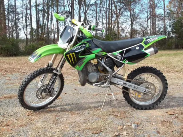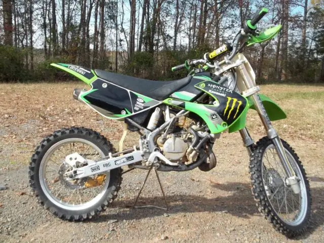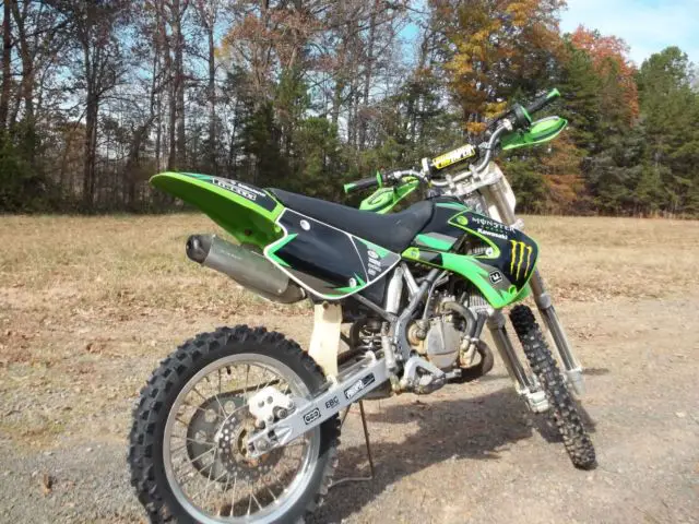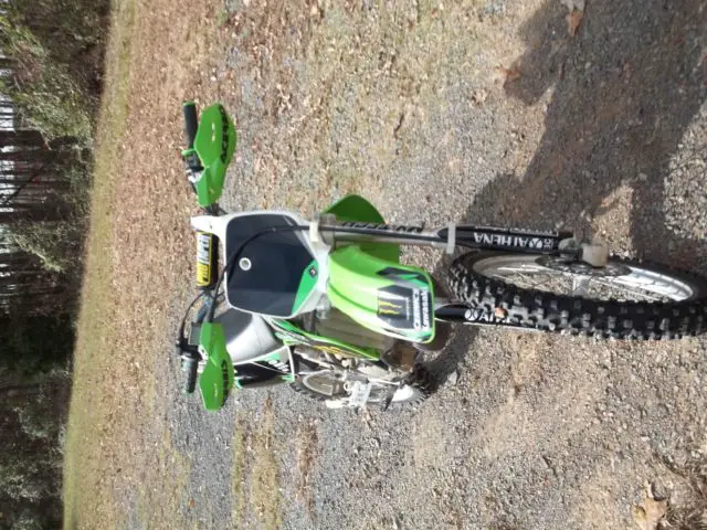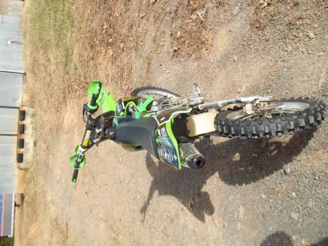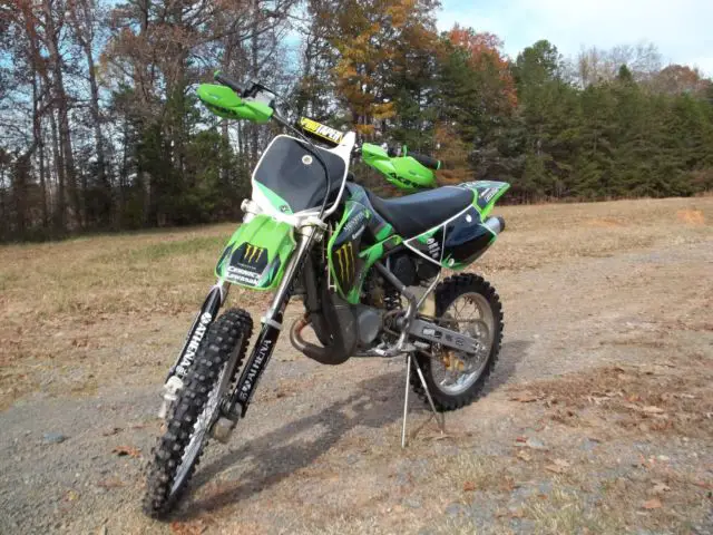 Kawasaki KX 10, 003 year model. in excellent condition. bike has been professionally gone through . motor has fresh complete rebuild with new pisto, od ki, rank bearing, ll new oil seals and gasket, lutch friction plate, ir filte, latinum spark plu, ngine ice coolant. new XC o-ring 428 chai, ew 428sprocket, ew full graphix ki, reen and black spider grip, and guards . brakes and suspension fully serviced. bike is ready to ride and itis FAST ! I have the original certificate of origin and owners manual with it as well. 100.00 NON REFUNDABLEpaypal deposit due at close of sale. cash payment in fulland pick up arrangementswithin 7 days of close of sale . or if you are using u-ship payment in full at close of sale and you make allthe shipping arrangements including any boxing or crating.I am in Norwood North Carolina the zip code is 28128. bike is sold as is no warranty or guarantee of any type. my phone # is 704-474-7648 Dan .
