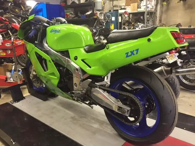 1990 ZX7 Vintage Sport Bike. I bought this bike because the customer bought a new bike in the middle of having this one serviced. This bike has Brand new Dunlop Q3, rand new DID chain and brand new Sunstar front and rear sprockets. Brake and clutch fluid were just flushed and changed and engine oil and filter were just changed. The last service on this bike was close to $1000 and the bike has not been ridden since except for a typical road test by technician. It has been stored on a battery tender in a climate controlled environment.