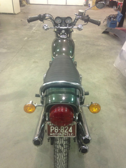 1974 KAWASAKI S3 MACH 11. ORIGINAL TIME CAPSULE. 400CC TRIPLE .8831 MILES VERY GOOD CONDITION. THE BIKE WAS LAST INSPECTED IN 1981. CLEAN MISSOURI TITLE. EVERYTHING WORKS AS SHOULD. PINSTRIPE ON TANK IS FADED AND THE PAINT IS FADED AS WELL. UNDERSEAT HAS A DIFFERENT SHADE- ALL ORIGINAL PAINT. RECENTLY CLEANED CARBS, IL CHANGE, EW BATTERY AND NEW REAR TIRE/TUBE. STILL HAVE ORIGINALO REAR TIRE IF WANTED.STARTS FIRST KICK AND RUNS GREAT.FRONT TIRE IS WEATHERCRACKED AND NEEDS REPLACED.