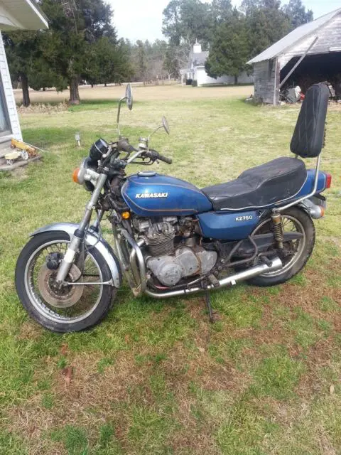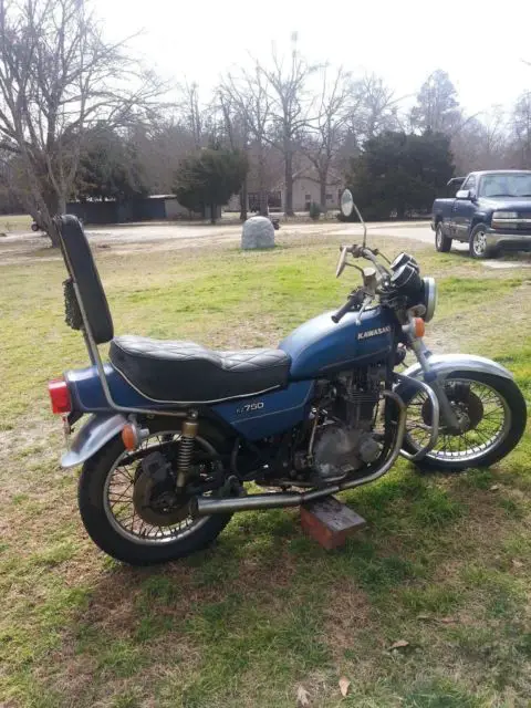 This is a 1976 Kawasaki KZ750 Twin....last run in 2013. The reason for parking was I had heart surgery and can not kick it over anymore. The starter will run but not engage. Front tire was put on new in 2013, ack tire is about 25% good. Carburetors will have to be retuned for newair filters that is on it...seems to be running to lean. (Not a new bike and is sold as is) buyer pays shipping or it can be picked up locally.