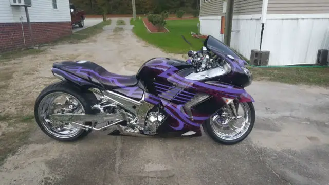 This is a 2006 Kawasaki ZX-14 with 1,232 actual miles. If you want to look at the best or either show class, iding it or pulling it, r bike shows. It has been kept stored and kept very clean; it has never been laid down. When I bring it out everyone knows it. If you don’t know what one of these cost to build then don’t waste my time calling me, nly for buyers. This bike has chrome everything, lastic chrome, from front to back, nce you buy it I will tell you the extras that come with it. This price doesn’t even include the cost of the labor. Listed below is the custom changes to the bike.