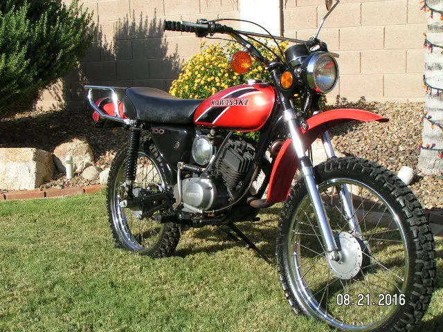 This G5B is truly a survivor. A mild restoration is all it took to bring this awesome low mile enduro back to it's shiny former glory. These bikes are becoming rare and have always been very desirable. Fully reconditioned to continue be a bullet proof enduro. Many new parts to include, ires, ubes, iners, lutch, ables, ender paint, tc. Engine is fresh and runs strong and reliably. Needs nothing and starts first kick. Own a piece of Kawasaki history with this great 100cc enduro.