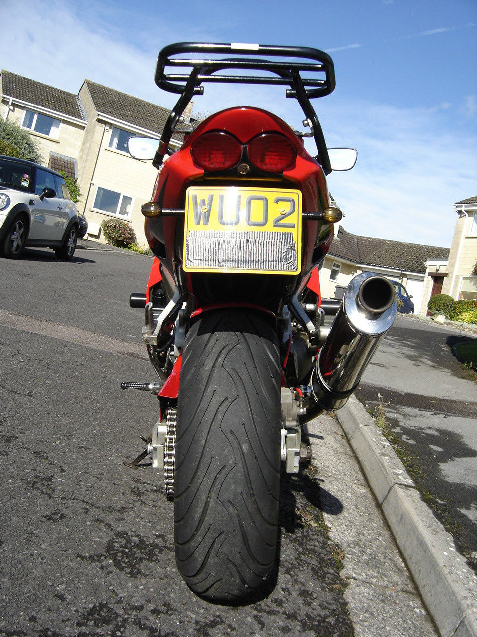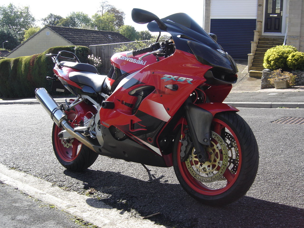 KAWASAKI ZX-9R E1 (2002) This is an advert for a UK model ZX9-R Kawasaki that was sold by George Whites of Swindon on 5-3-02. The bike has been clearly well looked after as the pictures will illustrate. and I feel that this is one of the better examples I have seen. To look at the bike. you would think it has covered no more than 20. 00 miles! The engine starts first time on the button. it sounds very smooth and responsive with no excessive noise etc. A race can has been fitted but if this is not your thing. nbsp;the baffle will be supplied with the bike. Some tasteful aftermarket items have been fitted. these are as follows: Black double bubble screen. Black headlight covers. Hel braided brake lines front + rear. R+G fairing protection. Mini indicators. Adjustable foot pegs. Luggage rack. Mini number plate + original. Hugger. Under tray. Oval Scorpion race can. Wavy rear brake disc and a useful alarm and immobilizer. The bike is HPI clear and has just been Mot'd with no advisory's. I have the Log book. Service book. Hand book. Mot's. nbsp;Datatool user guide. x2 Alarm fobs and x2 Kawasaki keys. If you have any questions about the bike. you can contact me on 07870998558