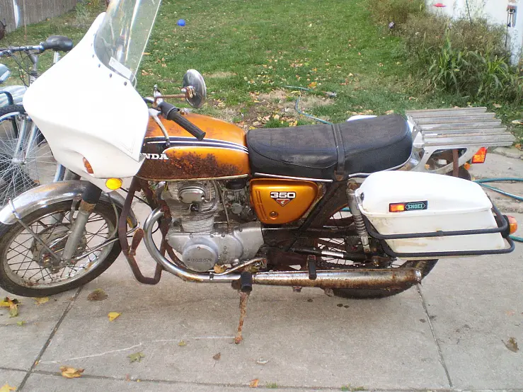 THIS IS A HONDA CB 350 MOTORCYCLE. WILL MAKE A GREAT RESTORATION PROJECT THIS FALL/WINTER. NOT RUNNING. BEEN SITTING. HAS GOOD ENGINE AND TRANS. MOTOR TURNS OVER (NOT LOCKED UP ) HAS KEY AND A CLEAR GOOD OHIO TITLE. HAS RUST. GOOD SIDE COVERS . CLEAN INSIDE THE GAS TANK. GAUGES ARE NOT FADED. REAR WHEEL WILL NEED FREED UP. WITH SOME TLC IT WILL MAKE A NICE RIDER. $50 DO AT THE END OF THE SELL AND REST UPON PICK-UP. THANKS FOR LOOKING AT THIS AD.
