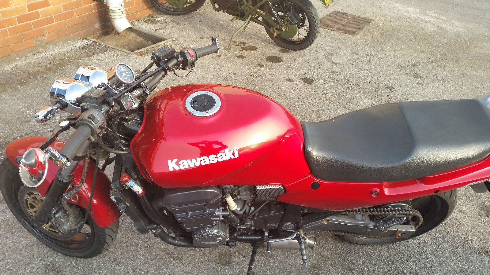 FOR SALEKawasaki 1100cc Streetbike. Taken in part exchange. The previous owner dropped the bike and damaged the plastics so decided to remove them and fit flat bars and twin headlights. It is a fabulous runner and is run daily. New chain and sprocket. new rear tyre. recent service and shims checked 500 miles ago. It's a bit loud on exhaust but this adds to the charm. A few scratched here and there. Would make a perfect winter bike. ??450 recently spent just need to sell as no room. ??950. 00