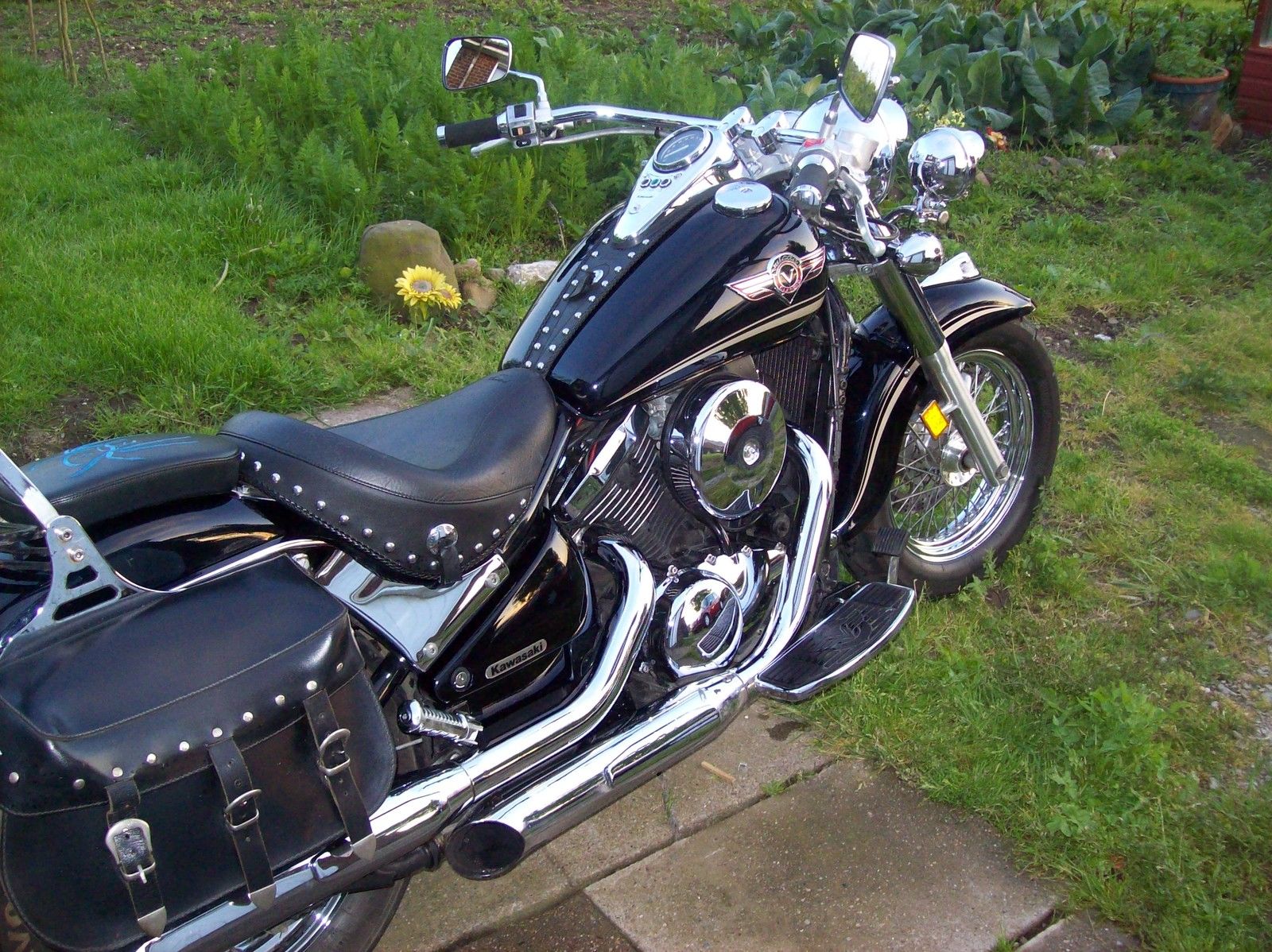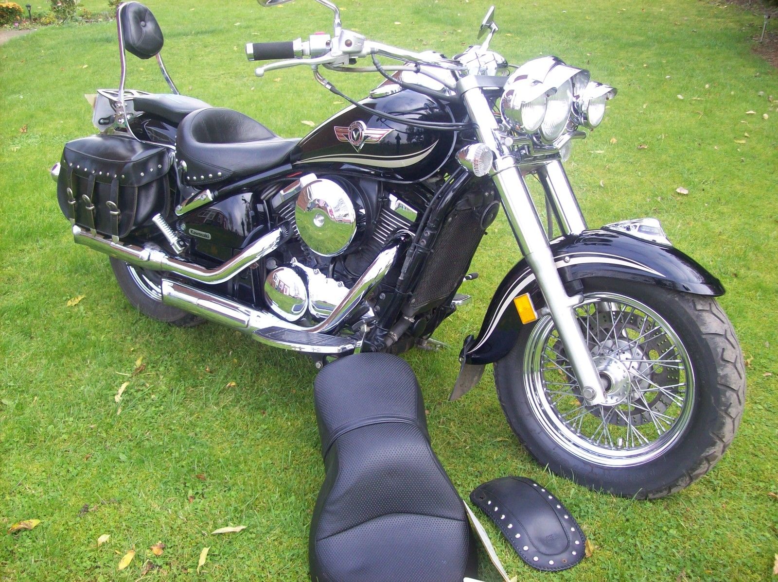 selling my Kawasaki vn800 Vulcan this bike is in excelent condition it has had plenty of money spent on it . it has just had new chain and sprockets new battery it has had split seats put on it but still have the original seat with the bike none of the seats have any rips or tares they are as new . it has one of custom wide bars the pipes have been legally modified it know has a great sound it know sounds very much like a Harley the bike only has 16000 miles on it from new it starts up first time every time it runs and sounds superb . mot till april 2015 but tax runs out end of October 2014 . this is a very reluctant sale but need to raise funds to buy a crew cab pick up which l may consider trading against looking for Nissan navara or l200 or something similar the price l am asking for is ??2750 please contact me on 07549307326 or txt message only 07769531147 please note that l do not have much feed back as l am a new member
