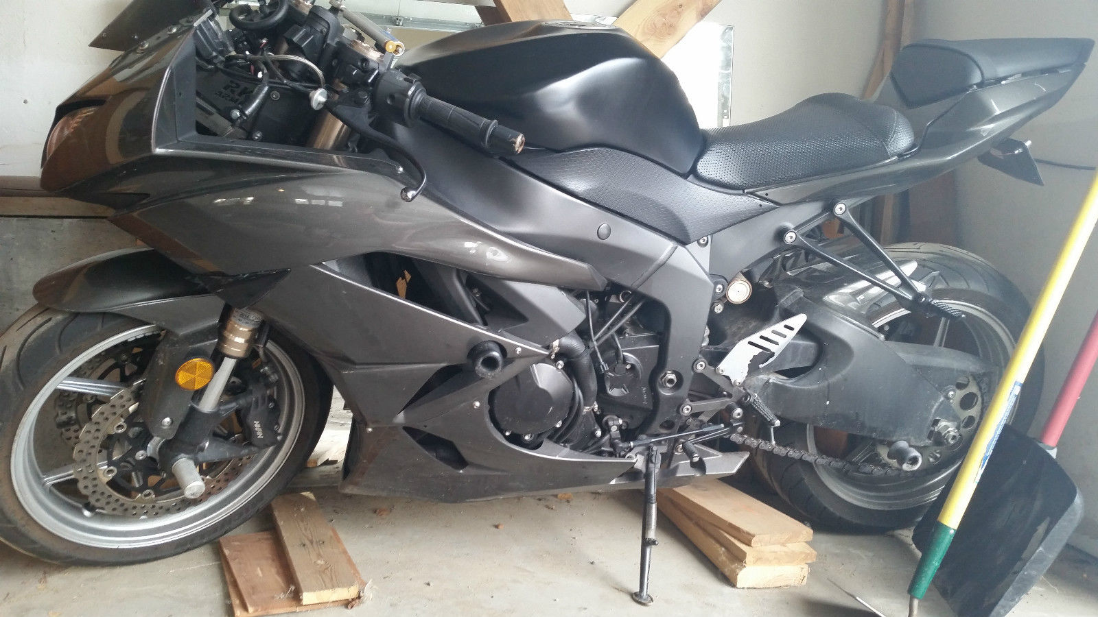 ~6000 total milesCustom charcoal paintUpdated brake linesChopped screenOhlins Steering Dampers/stabalizerIntegrated turn signal/tail lightBrand new front and rear tire this seasonFrame SlidersFront PegsAdjusted sprocketJuice box included but not installedM4 ExhaustCustom dent tankRecently tuned(July)Starts right up. no problems mechanically what so ever. Somebody DID back up into the bike and knock it down with mild cosmetic damage. I also put the bike down one time going about 3 miles an hour making a turn in a parking lot before the tires were sticky. Frame slider is still on the bike from this "accident". Absolutely no damage to the bike from this other than a small amount of scraping on the end of the left handle bar and the frame slider.