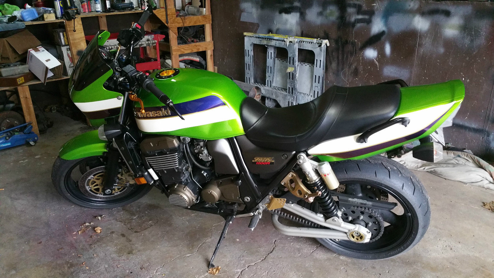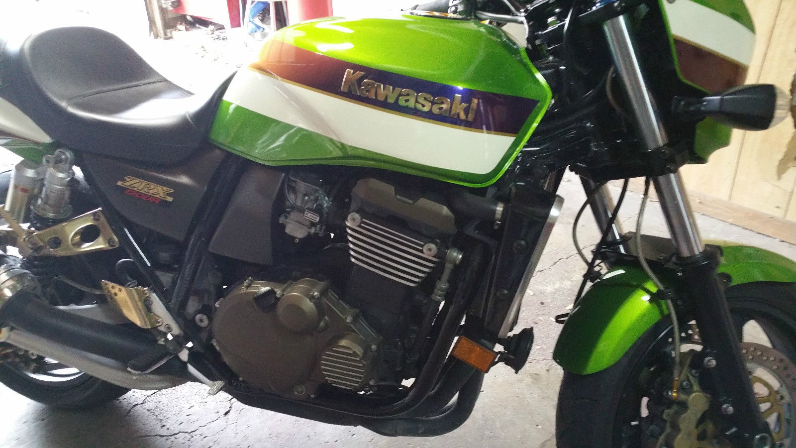 Hello. selling my 2002 Kawasaki zrx1200. his thing is like new let me say first. t has just under 13. 80 miles. owner and always stored in climate controlled spaces. t is the very sought after green and white traditional Kawasaki colors. t has been jetted. ith a yoshimura pipe. orbin seat. ew tires. nd some misc. odds and nends mods. here is not one issue with this bike. t looks like it came off the showroom floor yesterday!bid with confidence. O DISAPPOINTMENTS. hanks for looking and happy bidding!