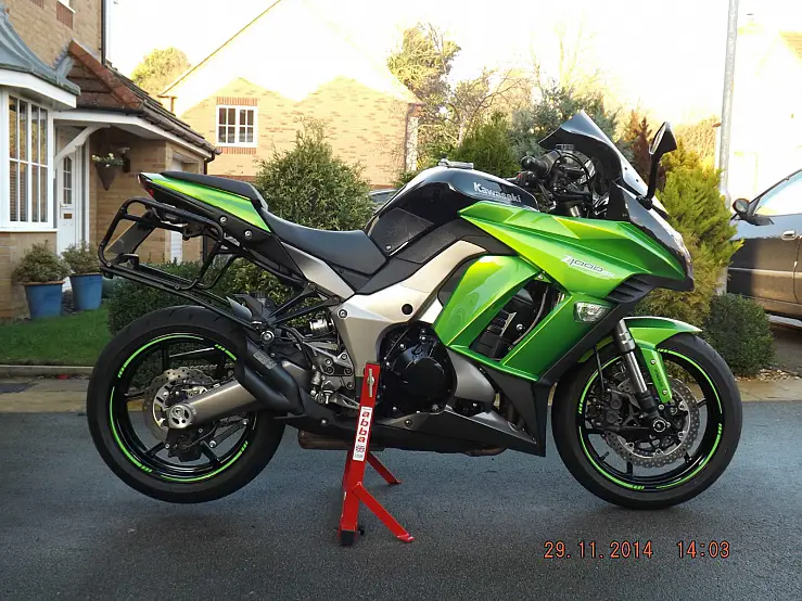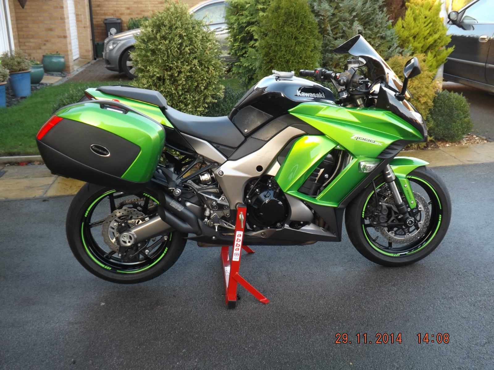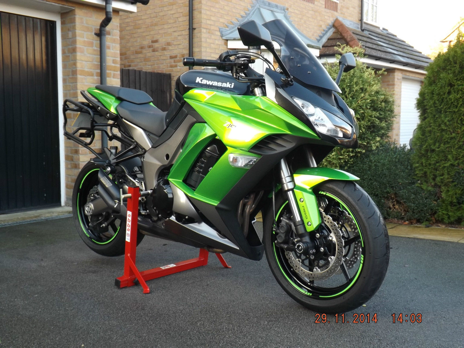 Kawasaki Z1000SX Touring in the best colour. Green & Black with quite a few tasteful optionsABS2013 - 63 Plate - First Registered 22/11/13Remaining Manufacturers WarrantyFull Kawasaki Service History - last serviced 17/10/14 at 3855Current Mileage - 4101Bridgestone Battlax BT16 - Front 3mm. Rear 2. 5mmExtrasGenuine Kawasaki Colour Coded Panniers and Frames (with heat shield as a safety precaution due to exhausts) Evotech Front Spindle ProctectorsEvotech Radiator GuardEvotech Tail TidyHealtech GIpro Gear IndicatorV-Trec Adjustable Black Clutch & Brake LeversPowerbronze Tinited ScreenTechspec 5 Piece Tank ProtectorsGenuine Kawasaki Gel Heal ProtectorsVance & Hines CS-One Exhausts with Baffles - These sound absolutely amazing but not too loudAFAM Black 40T Rear SprocketRear 25mm Jack-Up Kit - Improved the handling and makes the bike look betterGreen Wheel TapeAs you can see from the pictures. my bike is in immaculate condition apart from a very small stone chip on the front nose cone (see last 2 pictures). I've never purposely ridden it in the rain although I have been caught out in the odd shower. however I have ACF50'd it from new so it is fully protected. I'm only selling due to an unfortunate change in circumstancesI purchased this new on 22nd November 2013 but please feel free to do a HPI check. I have just paid the finance off but this can show against the HPI check for 10+ days so don't be surprised if this flags up. I have the relevant paperwork to confirm all is clear. I am open to sensible offers but please no insulting ones!! If you are interested in the bike without the options (panniers. levers etc) please make this clear when you make an offerTest rides are welcome but I need the full amount in my hand and proof of insurance before handPlease note that the Abba Stand show in the pictures is not included in the sale