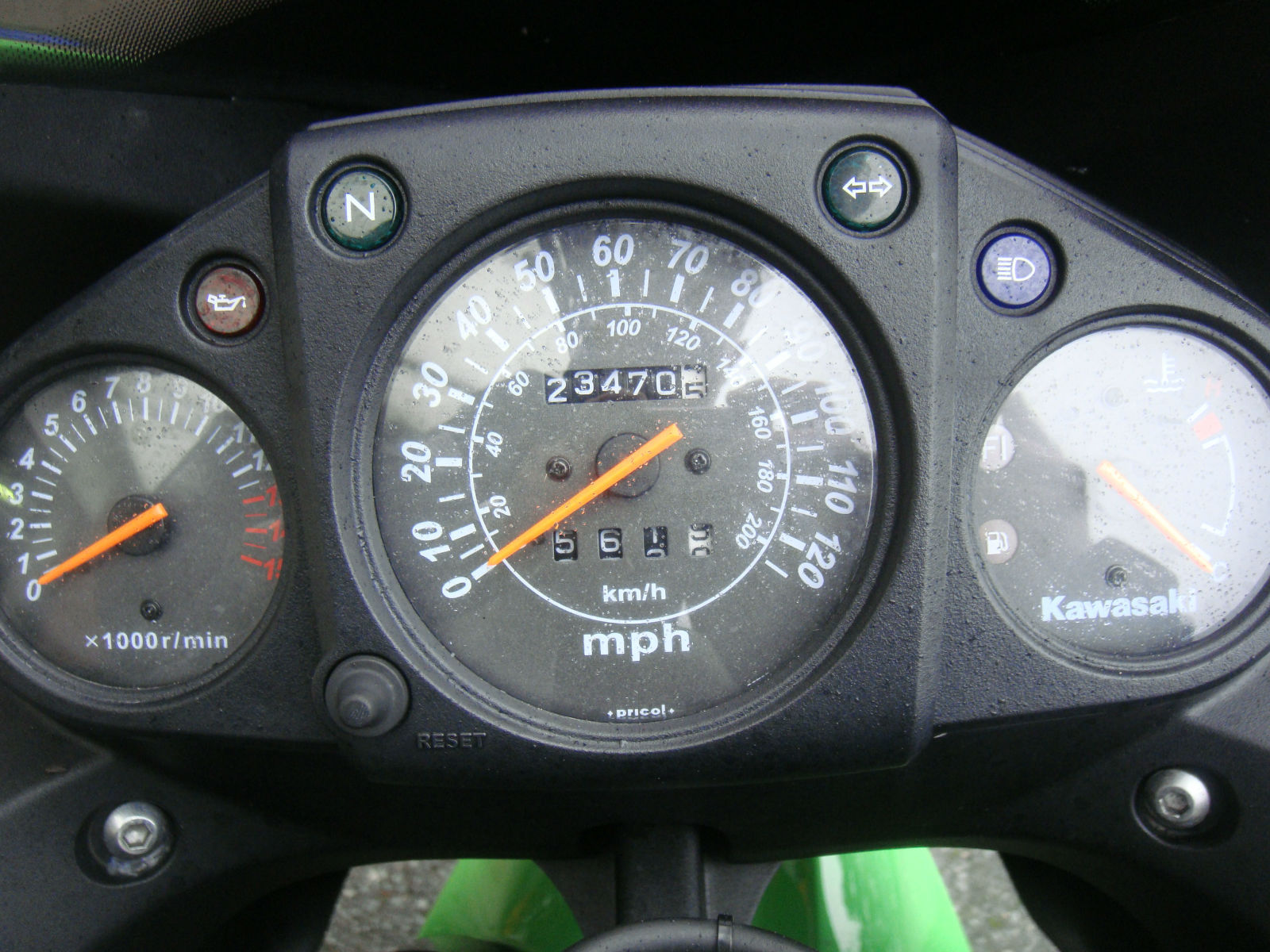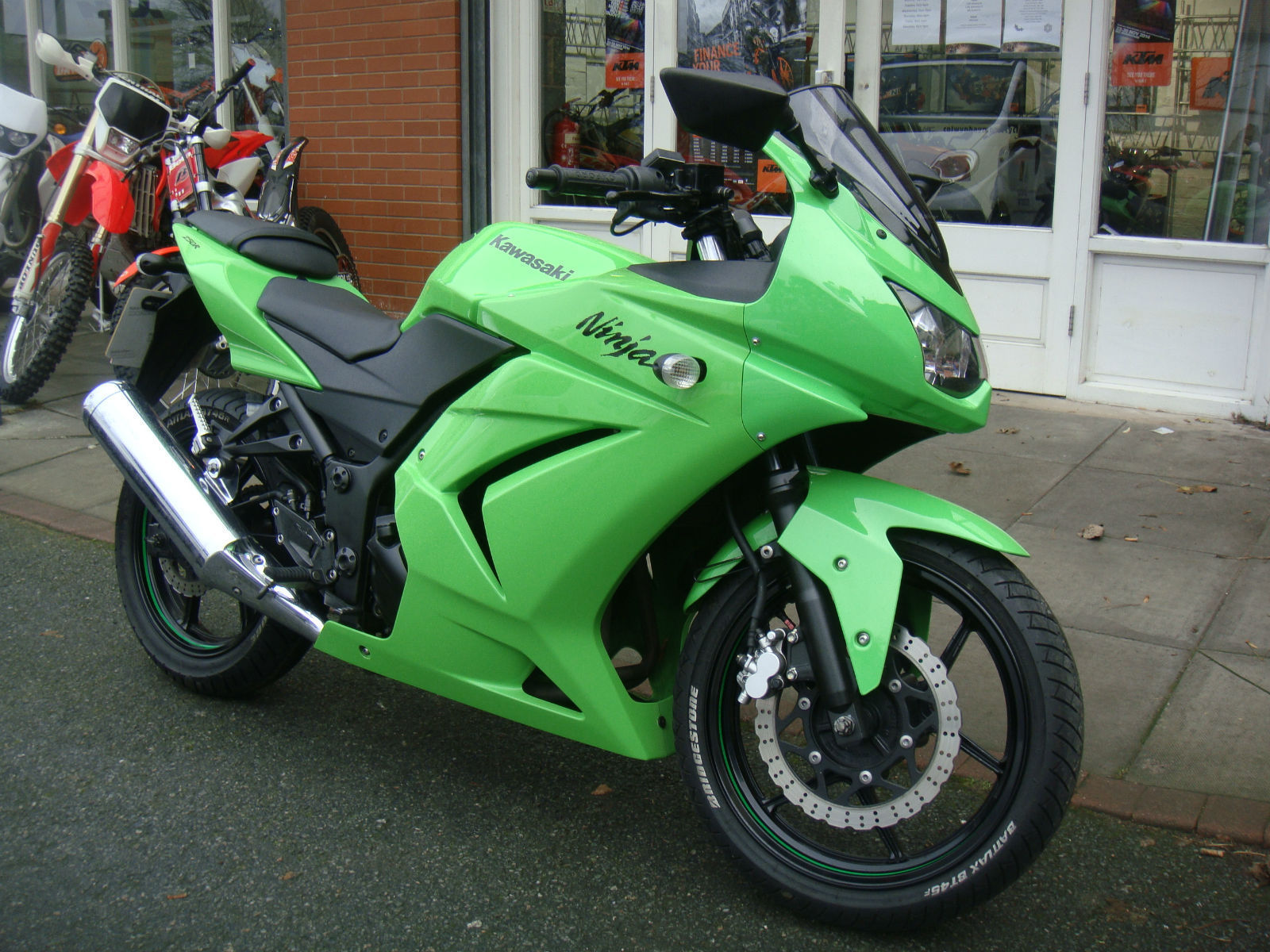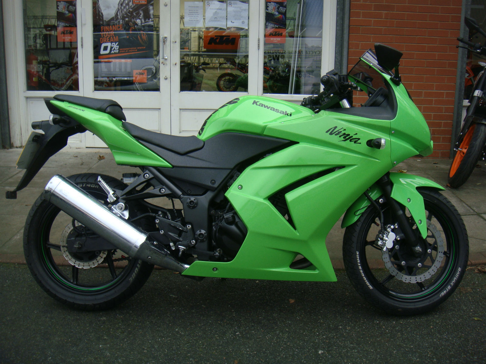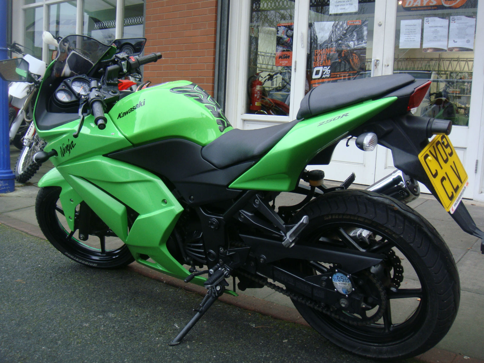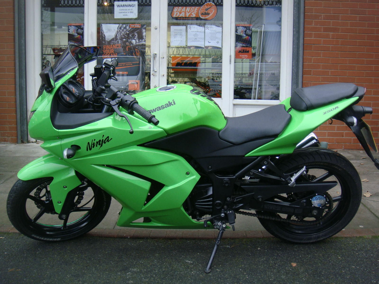 This bike comes fitted Oxford heated grips. The American market has been a big success for the Kawasaki Ninja 250 range for years and years and But even the Yanks need a fresh brew every now and then and the Ninja 250R is the latest offering. A major overhaul of the old. forgotten about ZZ-R/GPX 250 engine has bought Kawasaki Ninja 250R bang up date by being environmentally friendly and as easy to use as a Raleigh bicycle. The Kawasaki Ninja 250Rs claimed 33bhp is spread thinner than gold plating there's no sensation of the power coming into play or fading as the motor spins to 14. 00rpm so very quickly. Fuel injection does what it does precise and cleanly. which kinda sums up the motor. Why not take a look at the Used Motorcycle Finance calculator on our Colwyn Bay Motorcycles website to see the monthly repayment options on this bike:http://www. colwynbaymotorcycles. com/used-motorcycles/kawasaki-ninja-250-r/