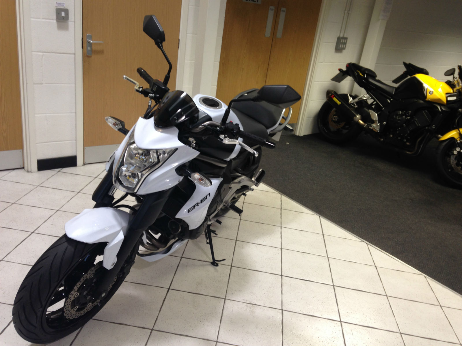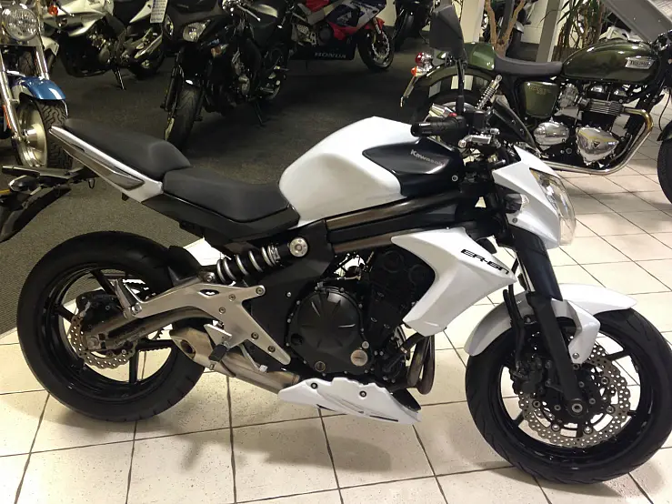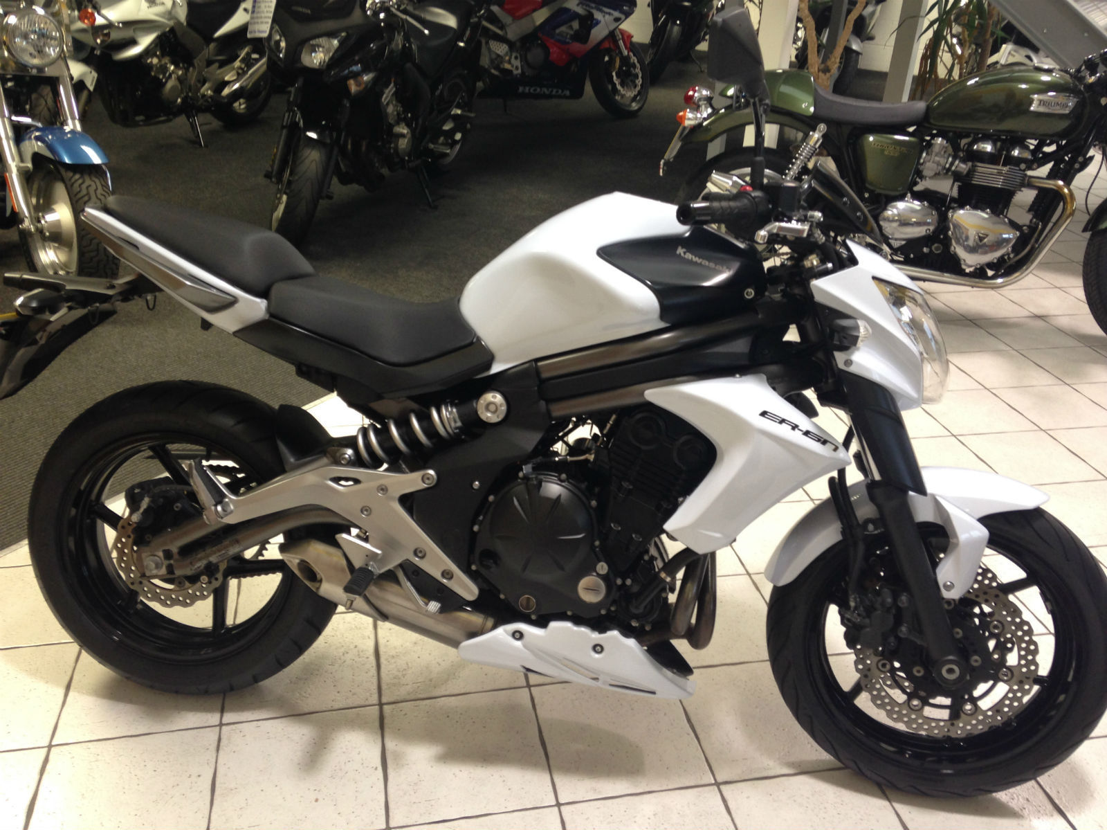 Kawasaki ER650 ECF ER-6N 650cc. 2012 61 reg. 4169 miles. White. UK bike. Full service history. as new. belly pan. immaculate low mileage example. Warranty. Finance and part exchange available. Delivery to your door. See our website www. eastmidlandsuperbikes. co. uk Cars or Motorcycles taken in P/X. All makes and models of motorcycles bought with free collection