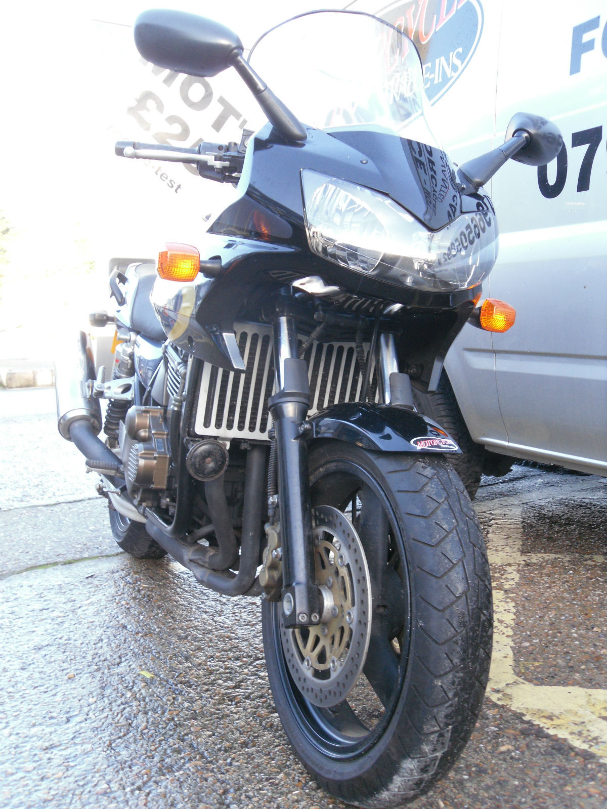 Really bright unmarked example with a good documented service history. Totally standard with the addition of a taller screen and bespoke rad cover. Brand new Bridgestone rear tyre. Fitted CAT1 Meta alarm/immobiliser. Comes with spare key. spare alarm fob and HPI certificate. Runs superb.