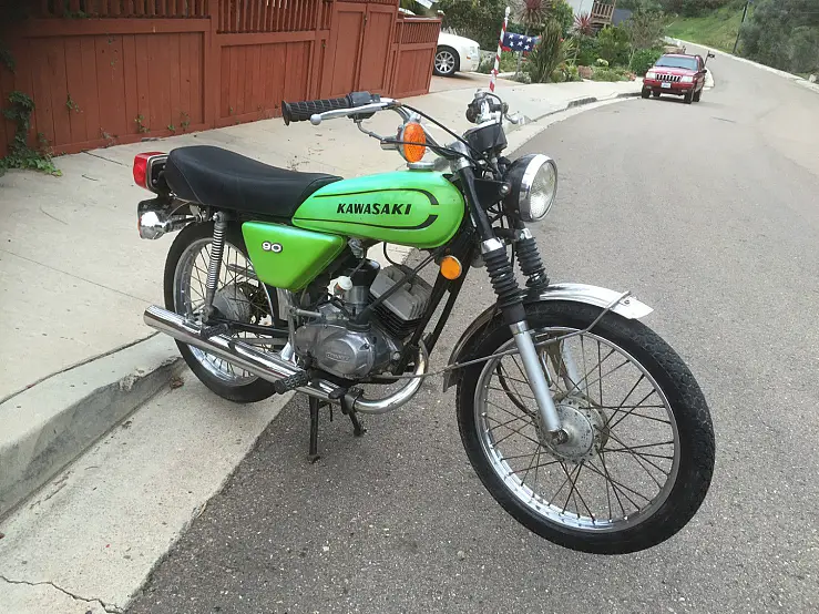 1973 Kawasaki G3 90 Street bike All original and one ownerThis bike is in absolutely amazing condition Chrome is Perfect and paint is and 100% original with very little fadingStarts up first kick always runs and rides like a new bike The tires(which are original) will need a change but they do hold the air. no punctures. Will provide owners manual and service recordsComes with original Kawasaki keys & non-op registration and bill of saleHappy bidding IMPORTANT INFORMATION THAT WE WOULD LIKE YOU TO KNOW:WE PROVIDE INFORMATION TO THE BEST OF OUR KNOWLEDGE AND ABILITY TO ENSURE THAT DETAILS ARE ACCURATE AND TRUTHFULWE WOULD LOVE TO BE ACCURATE 100% OF THE TIME. THOUGH WE ARE NOT COMPUTERS AND MISTAKES DO HAPPEN FROM TIME TO TIMEIN THE EVENT THAT YOU; A) FIND AN ERROR IN OUR ADD. B) FIND AN ERROR IN AN ITEM THAT YOU RECEIVED; PLEASE NOTIFY US IMMEDIATELY PRIOR TO LEAVING BAD FEEDBACK. OR REPORTING US TO EBAYGIVE US A CHANCE TO CORRECT THE MATTER. AS WE WANT OUR BUYERS TO BE COMPLETELY SATISFIED. ANDWE ALWAYS TAKE INTO CONSIDERATION ANY CONCERN FROM OUR BUYERSAFTER 3 DAYS OF NON-PAYENT. OUR SYSTEM WILL AUTOMATICALLY OPEN AN UNPAID ITEM CASEDO NOT CONTACT US ABOUT ANY SALES OUTSIDE OF EBAY/OR ASKING FOR PERSONAL EMAILS AND PHONE NUMBERSANY ITEM SHIPPED TO CALIFORNIA WILL BE CHARGED SALES TAX(8. 75) ON THE TOTAL PRICE INCLUDING SHIPPINGALL POSITIVE FEED BACK WILL BE RETURNEDWe appreciate all of our buyers. without YOU there's no US :)