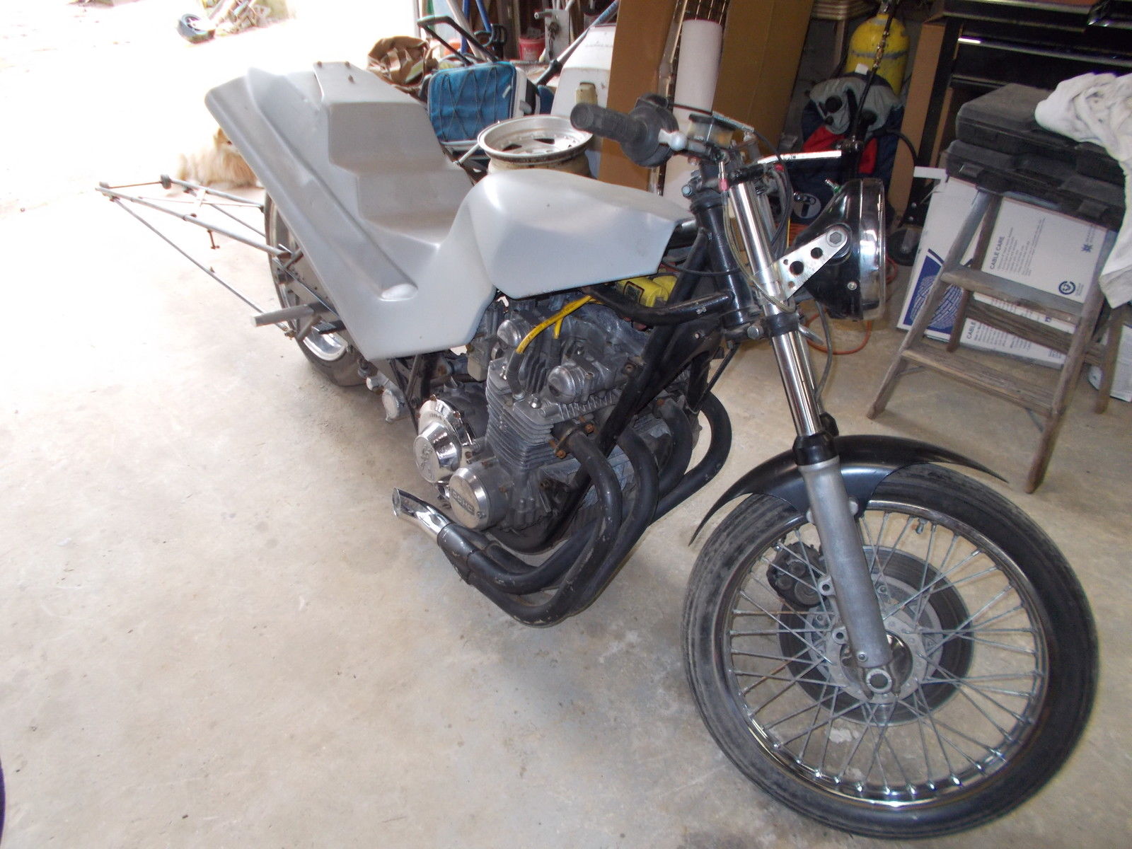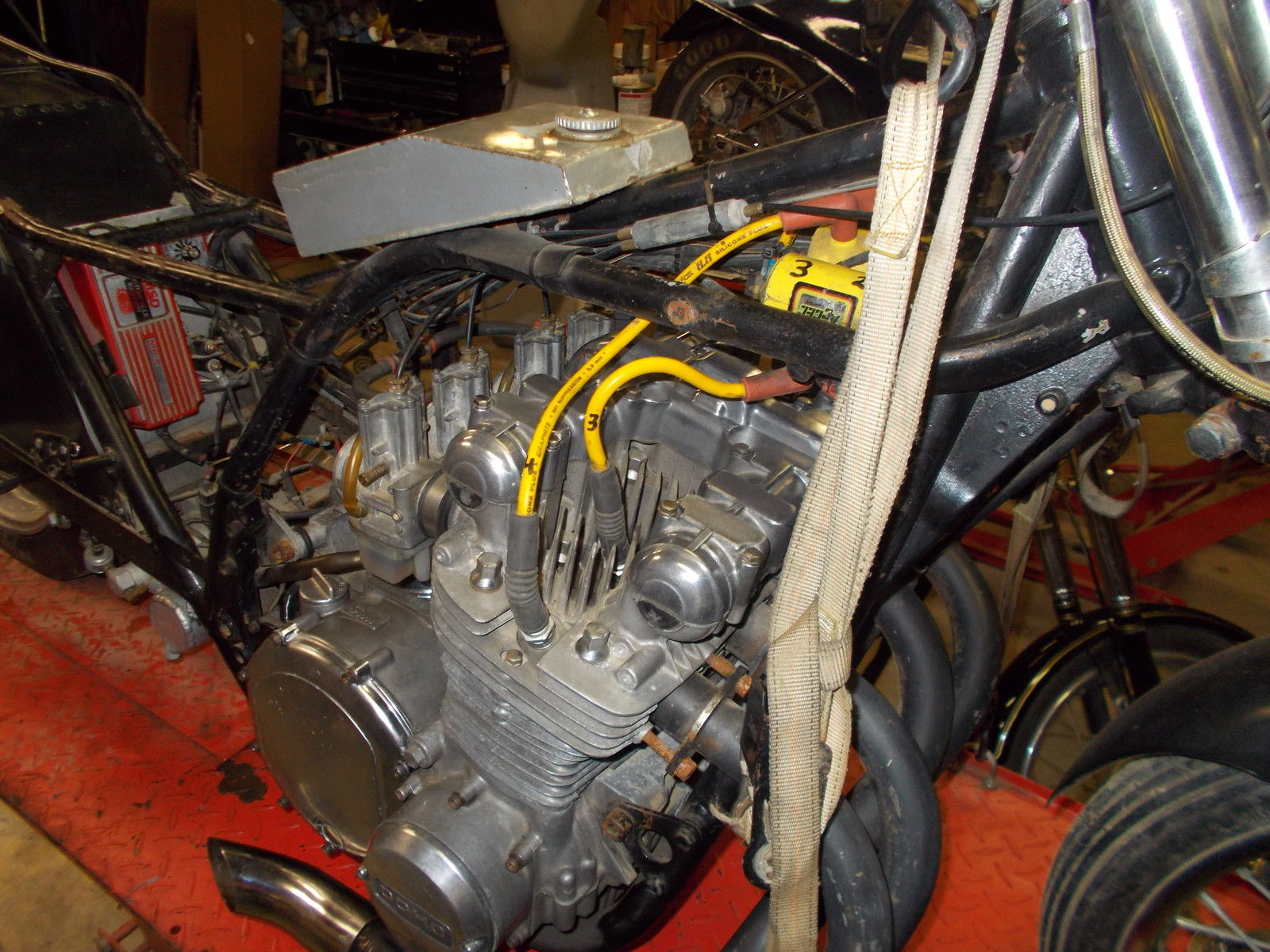 New lowered starting bid and reserve price also Buy it now price. Kawaski Drag bike. has Fiberglass body with front head lamp fairing and windshild. wheelie bar. good rubber front and rear. disc brake front. engine is 1105 cc with MSD ignition accel coils Electron carbs. head has been ported and fitted with Web 110 cams. air shift. stock starter. bike starts and runs good. comes with spares as follows: spare ignition module & coil with timer relay. cart starter with blank off plate & starter drive nut. solid monique rear wheel asy with disc brake for rear. ( hub needs machine for new brgs furnished with it) Karata glide lock up clutch and cover. Bike will require 1 new battery and a little TLC clean up. body is in gray primer. any questions please ask prior to bidding I will answer through this listing so all can see. Thanks and good luck bidding. I purchased this bike a couple of years ago as a project bike but did'nt get around to finishing it. the info on this bike is what was furnished when I purchased it. don't know how it will run on track leave that to the new owners. This bike is sold as is with no warranty implied or expressed. I will furnish a bill of sale for the bike no title as it is a track bike. it is the buyers responsabuility for pick up or transpot of this bike