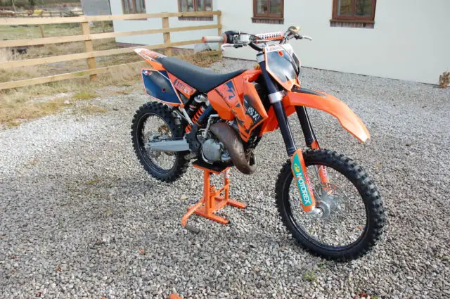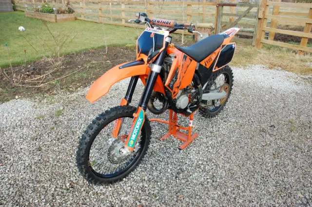 KTM SX 125This is my wife's bike that I bought for her 30th birthday to find it was to high & very very quick. Its in good used quality & hasn't been raced for over 5 years. since we've owned it. Just used round the family farms field. Its in great condition apart from the usual scratches & a cut in the rear tyre. see pictures. OK for field use but you may need to get a new one for racing. Lots of grip still on both tyres.