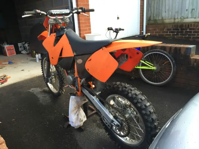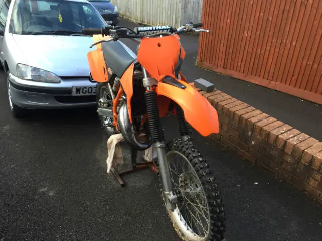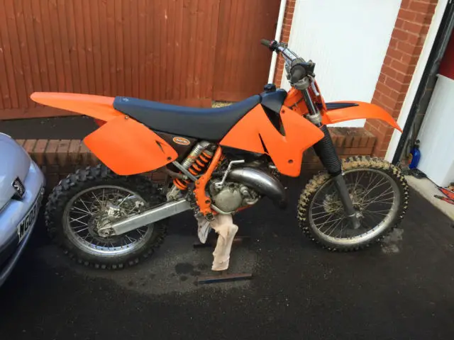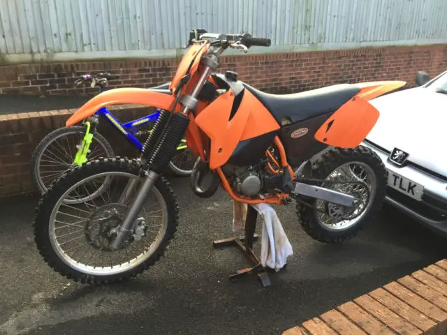 1999 KTM 200 EXCThis bike has had a full strip down rebuild including: main crank bearings and new crank etc. Starts first couple kicks and runs perfectlyAlways warmed up before useall good brake pads etc. loads of life left in both the tyresreally lovely example. there is a rip in the seat (shown in photos)any questions feel free to ask. 07808540747thanks for looking