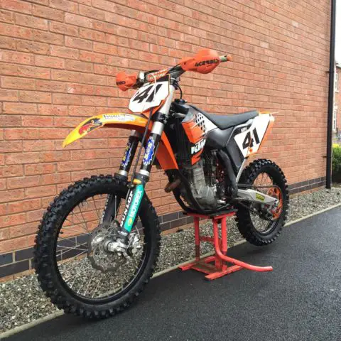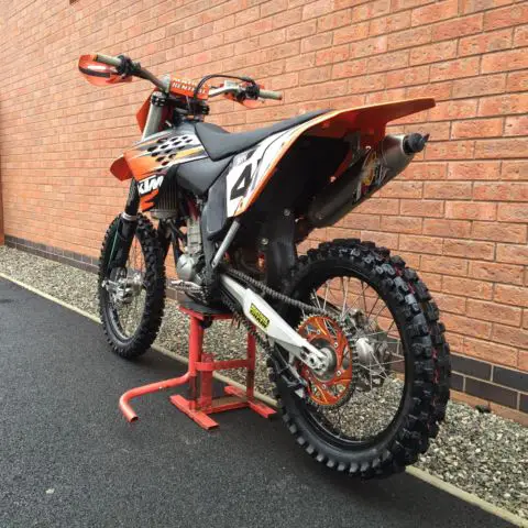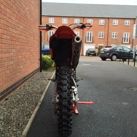 He has owned this bike since September 2011. Due to other commitments this bike has only been ridden twice in the last 18 months. It has been maintained regardless of cost. It's has a full set up and service seal replacement. from SPS suspension . It has an fmf exhaust which was ordered from the USA as cannot be purchased in this country. Also as you can see both front and back tyres are in very good condition.