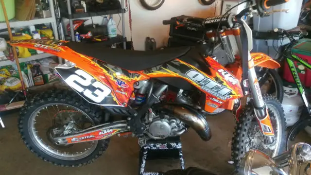 I bought this bike two years ago and have made some upgrades. FMF factory exhaust. lower linkage. RG3 suspension. and new offset triple clams to name a few. This bike is fast and no doubt beats 250F's and i have pulled 450's believe it or not. If you want corner speed this is the bike. Newer tires and an aftermarket gas cap. The bike has company graphics so you need to install your own of course. This bike is ready to race and have fun on. Enjoy!! No shipping. no exceptions. Local pick up only.