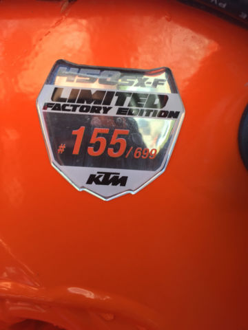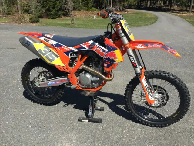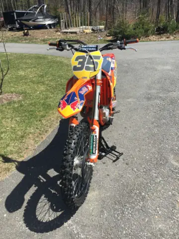 I bought this bike new last year and was only able to get 6. 5 hrs on it due to a back injury. I don't want to sell it but Its to nice of a bike to just sit in the garage. The bike truly looks brand new and is in absolute mint condition. I do not "Need" to sell it and won't take a low ball offer so if your not serious please don't waste your time. I do have some extra filters and oil that I will let go with the bike. The power and handling on this bike is incredible! I did add a lithium battery to drop a little weight but other than that the bike looks like it just rolled off the show room floor.