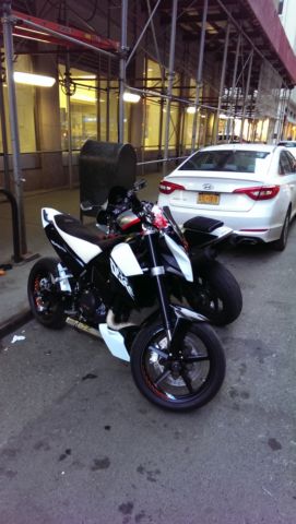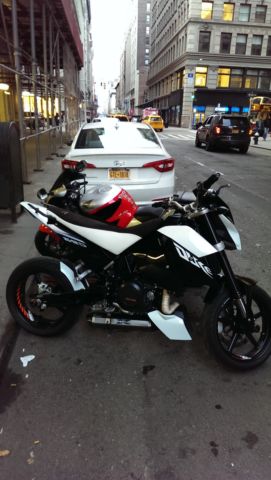 HELLOJUST LIKE THE TITLE SAYS 2008 KTM DUKE 690 BLACK/WHITE. READY TO ROCK NEEDS NOTHING YOU WONT FIND ANOTHER ONE LIKE THIS AND THIS CLEAN. 20%RPM/INCREMENT CARBON TUNNED EVERY GEAR TO PERFECTION. DYNO JET 5 REMUS EXHAUST AND OTHER MODS TO MANY TO LIST. SOUNDS AMAZING ITS READY TO WHEELIE FROM LIGHT TO LIGHT OR TAKE TO THE TRACK. ALWAYS GARAGED NEVER SEEN RAIN.YOU WILL LOVE IT.GOOD LUCK AND THANKS FOR LOOKING.BTW MILAGE WILL CHANGE AS I RIDE.