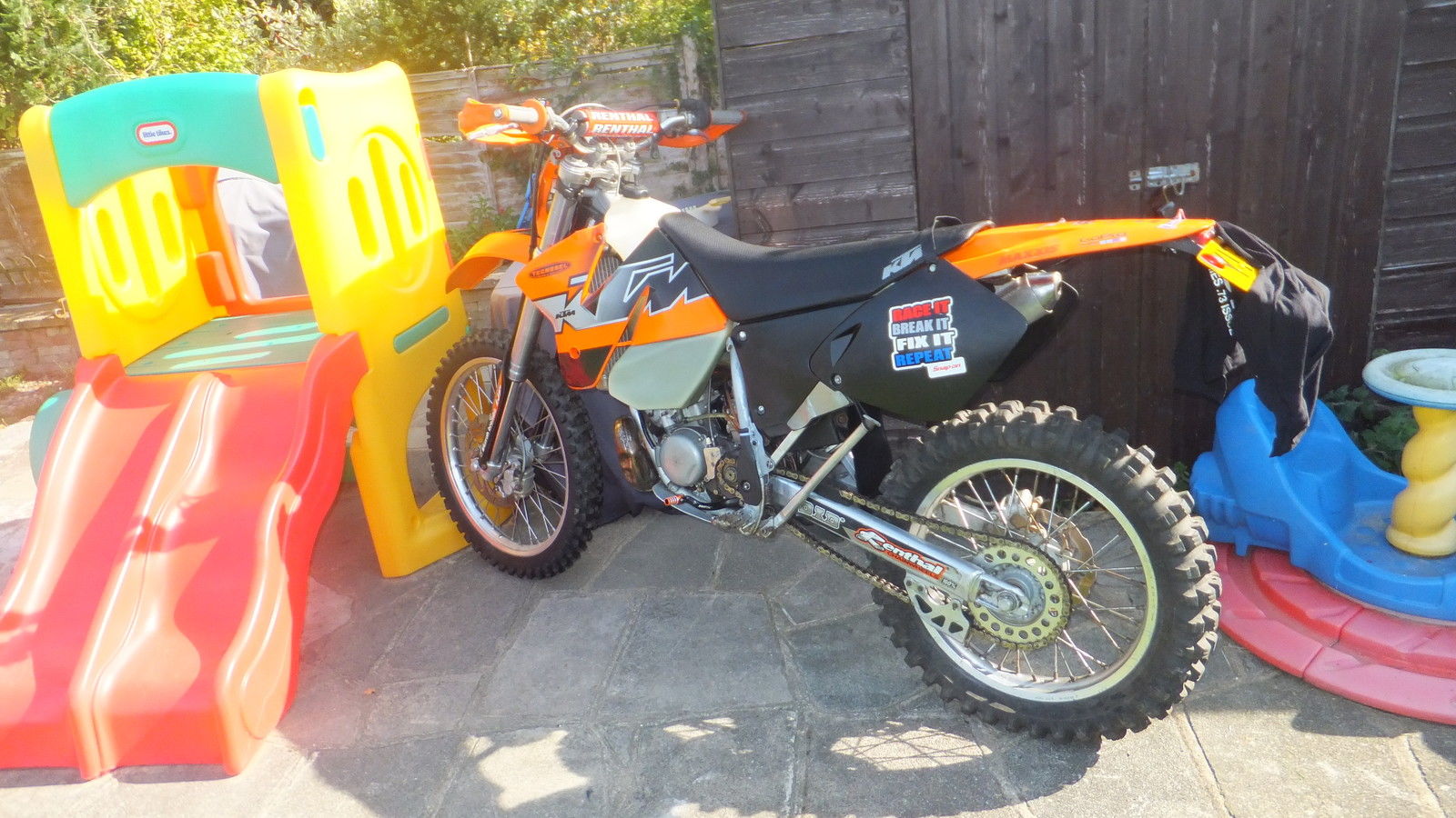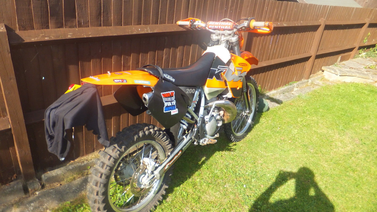 KTM 200 EXC FOR SALE AS I BOUGHT IT FOR GREEN LANEING BUT USED IT TWICE AND NOW CANT BE BOTHERED. ITS BEEN TO ? GIBBS RACINGOF ESSEX ? AND WAS SET UP ON DYNO. ? MOTd TILL 28 MARCH 2015 ITS NOT TAXED BUT WILL TAX FOR BUYER IF THEY WANT TO PAY THE AMOUNT ON TOP . I CANT FIND THE LOG BOOK BUT HAVE ALL OTHER PAPERWORK INCLUDING THE GREEN PART. I WILL KNOCK OFF £25 OFF THE FINAL PRICE TO COVER THE COST OF LOG BOOK. IT COMES WITH GASKET SETS ANY QUESTIONS PLEASE E-MAIL?