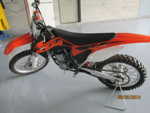 450 SX-F. This bike was purchased new and has less than 30 hours. Slight bend in handle bars is all that is wrong. If you are looking for a new bike for less than half then this is the one. If you have any questions please do not email or text because I do not receive text but call 270-748-0947