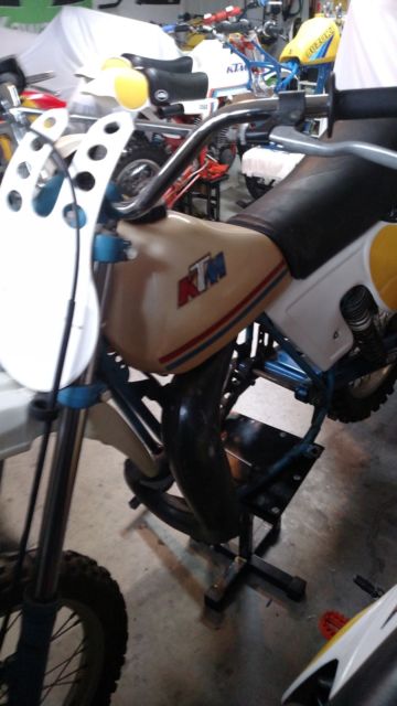 This is a nearly complete (missing clutch cover and silencer) and very rare 1979 KTM 420 project bike. It will require a total cosmetic and mechanical rebuild. If you are mechanically inclined and a vintage KTM fan this could be a good winter project for you.I have owned several vintage KTM' and the 79 KTM 420 is one of my favorites net to the 1981 KTM 495. I am selling off some of my vintage KTM's and this is a project I will never get to. You can get all the parts (pistons, earings, leeves, eals,etc from Enduroklassiker). With the right amount of time and effort it can be brought back to its original glory. Please feel free to contact me if you have any questions. I will add more pictures in the next day or two. I do have some very good shippers I could refer.