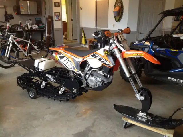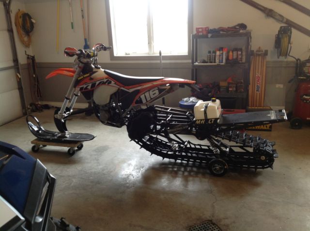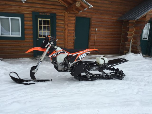 2014 KTM 500 xc-w with a 2015 timbersled long track kit. This bike is in perfect condition with only 44 hours. There are no major scratches or anything wrong with it at all. I take great pride in my bikes and wash them after every ride and change oil more than I need to. This bike rips. I have 4 trips on it out west. I have the ktm bark busters on it, and warmers for the winter, xtra springs for the forks for summer and winter all by race tech. it has an fmf exhaust and remappedecu. This bike is ready to go. Tires and wheels are in excellent shape also. It didn't get driven much in the summer only a few rides. I also have the top of the line ohlinssteering stabilizerl for it that's made for this bike. any questions please call me at 2182308900 as I am needing to sell. I have it priced cheap, have over $18000 in this setup. youwon't bedisappointed at all. Thanks and good luck. This bike does have a back up kick starter thats what makes it worth more. The Bike new now is $10500. this is a great deal selling this cheap with the timbersled.