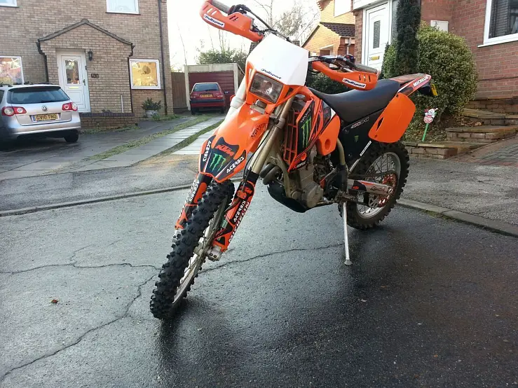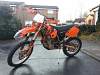2003 KTM 450 EXC Only 4120km/ 95hrs and this bike was serviced after the last ride. I've own this bike for over four years and it still brings a smile to my face when ridden. f your looking at these bikes you obviously know how lively and how fun these 4strokes are. hey are as lively as a 2stroke but they are a lot less maintenance. This bike comes with another set of plastics. brand new renthal o ringchain/ brand new sprockets (not fitted yet). spare back tyre. aynes manual and the correct feeler gauge for adjusting the tappets. It also has a clutch saver fitted. a one way valve on the fuel tanks breather and a electric fan on the radiator to keep water temps down when riding slow through woodland ect. I also have a very nice set of super moto SM wheels with new brake disks and metzeler racetec k1 wet tyres fitted. also have a front spindle reducer kit so they would fit a exc. shame I never got round to fitting them but my circumstances have now changed. nbsp; so they will be going back on here soon for £350. nbsp;but I would let them go a lot cheaper if brought with the bike (please see pic)I welcome any questions. nbsp;I'm base at Ipswich. nbsp;but please don't expect a new bike this bike does show signs of wear. ut over all is in vgc for year£1900 onoThanks for looking. Warren