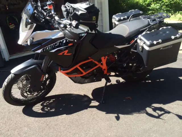 2014 KTM 1190 R, ike has been ridden as designed and has seen some off road miles. No issues or problems with the bike and it works great and as well or better than everyone reports! I put on Black Dog skid plate, il filter and radiator guard and their awesome footpegs, ouratec bags and very substantial HDB handguards, lso has a Uni-filter air filter. Bike has heated grips and Wings Heat Shields which work really well. Bike does have 1 nick in engine guard on left side, tip over while standing still on a hill in the dirt. Only reason for selling is my job leaves me very little time to ride anymore so the bike just sits, o I am selling. Any removed stock parts come with the bike.Bike may get a few more miles on it as I do take it for short rides, treet only.