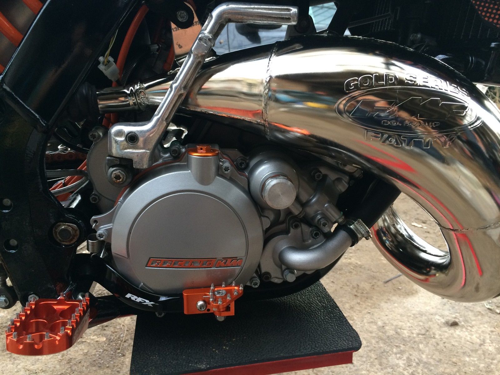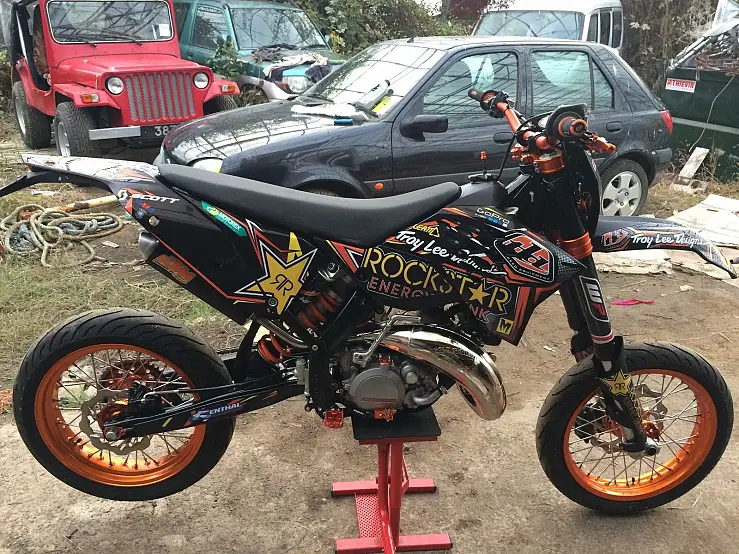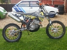 Ktm 125 EXCI have a stunning example of a ktm 125 exc. I have built this bike from scratch. I have gone through and done everything to this bike. I built this bike to be just a show room bike and not actually use it. nbsp;unfortunately i am forced to sell it as i need the money for a deposit for my new house. I have built this bike with mostly genuine parts from my local dealer. The engine was completely rebuilt using genuine parts except for the piston which I used PRO-X piston. This is a list of the genuine parts I had the engine rebuilt with;crankshaftgasket kitseal kitall bearingsheadbarrel re-sleeveflywheelouter clutch casinginner clutch casingstator cover clutchmotor ex gearbox oil power valve rebuiltI have had everything on the bike powder coated;framesubframeswing-armradiatorsfront and back callipersfront forksrear shock springI have also had a lot of other things changed and put on such as ;wheels anodized in orange at talon new tyresktm anodized orange handle barsorange foot pegsorange flexi front brake lever & clutch leverorange & black rear brake lever and gear selectorktm orange triple clamp yolksfmf fatty gold series downpipektm powered by fmf end-can new Acerbis plasticsnew graphic kit new genuine brake lines new genuine clutch linenew front and rear pads and discsnew fork seals and fluid water pump housingfront and rear brake light switches new genuine complete head light genuine speedo cable and magnetnew genuine rear sprocket and chain orange carb hoses new exhaust springs new air-filterradiator protector stickersnew ktm gripsbolt kitThis bike is completely road legal and road registered!! The bike is located in the channel islands Guernsey :( so buyer will have to arrange picking it up! I will need full payment upfront before the bike is taken. I would highly recommend that the bike is viewed before sold ! It will be sold as seen. The bike is well worth the money i have spent well over £4000 on it. give me a call on 07911 721 448 if you have any further questions or enquiries.