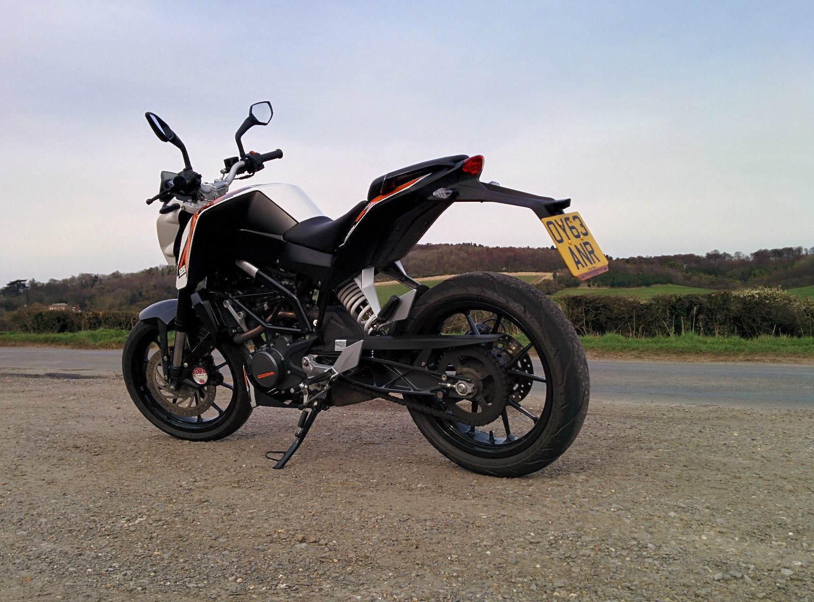 I am selling my gorgeous KTM Duke 125 . arely a year old. Full service history. 1500 faultless miles covered. ecent chain and tyres. ervicGed last month. BS model as its a 2013 model. am the only owner and purchased this new on my birthday last year. I have fitted ktm grips and have made no other modifications . The bike is like new and always garaged. I am open to offers so please feel free to contact me about any questions you might have. mark 07947272048