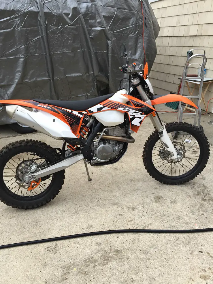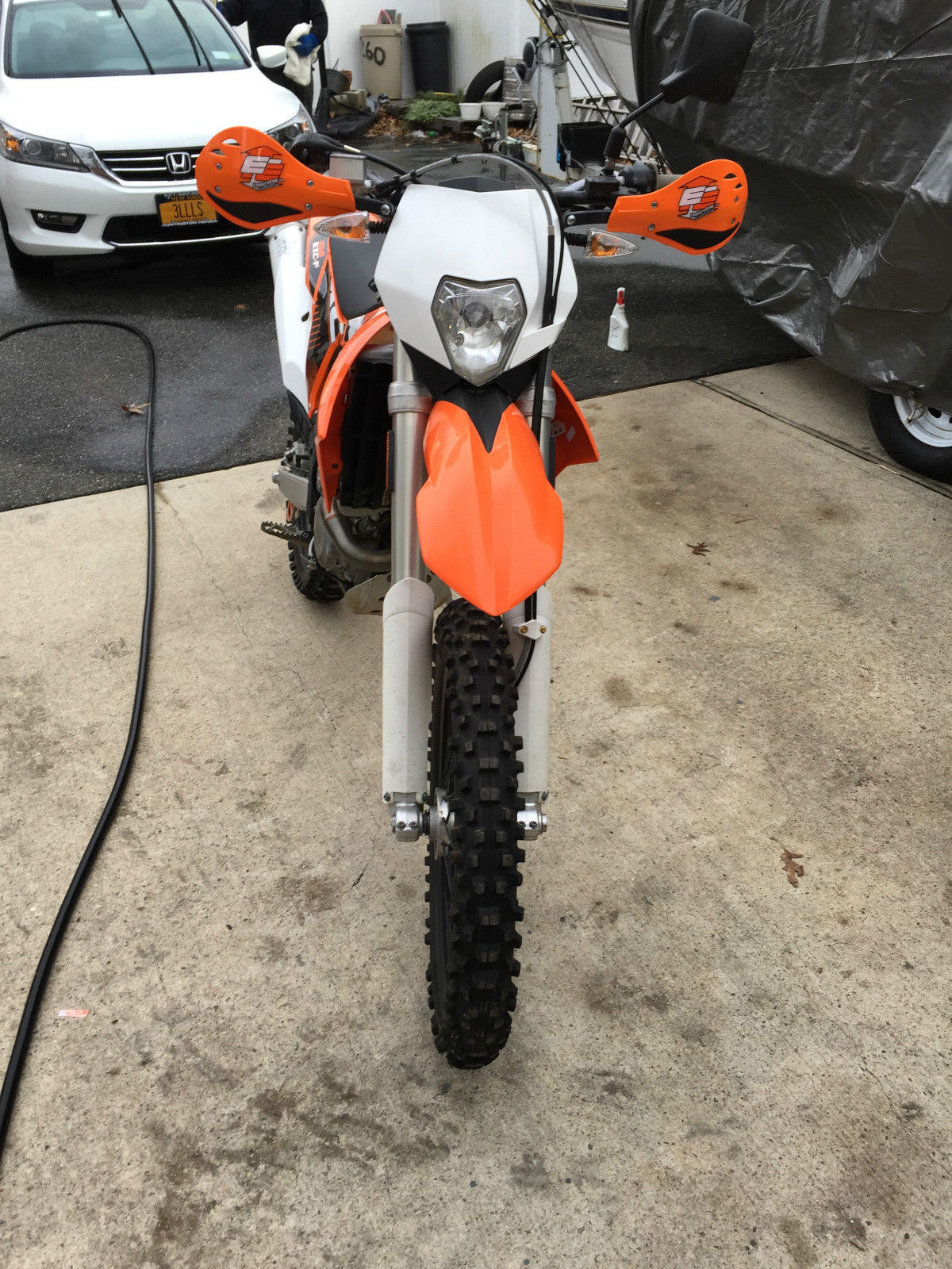 What we have here is my son's 2012 KTM EXC 350 lightly used mostly dual sport rides with 49. 5 hrs and 921 miles. ike still has original chain n sprokets in good shape . il was changed every 8 hrs (motorex syn w/ filter) all pollution controls off bike. agic mod done. ike runs excellent. as bark busters. ear shark fin to protect rotor. ear tires 70%. ike is street legal new york reg. no disappointments here bike runs. hifts. nd performs as should. ery well kept. and maintained ktm. ny ques. call me lou 631-697-2262 cell. ike is for sale locally and reserve right to end auction at any time. call with anything u need to know