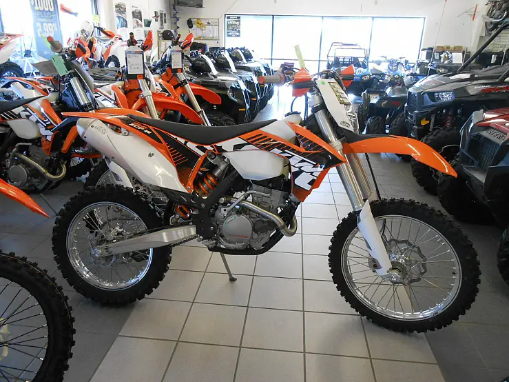We have a brand new 2012 KTM 250 XCF-W that is ready to race or explore your favorite riding area. It has electric start and is fuel injected. The top of the line KTM has white power suspension. Brembo brakes. exel rims. Renthal bars just to name a few premium features. The wide ratio gear box is perfect for woods riding as you don't have to shift as often as a short ratio gear box. The fully adjustable suspension can be tweeked to your person riding style. If you are looking for a great woods bike at a great price. this one should be on the top of your list. Since we are a motorcycle dealer. we reserve the right to sell this bike locally at any time during the auction as long as the reserve is not met. Once the reserve is reached we will hold it until the end of the auction. If you have any questions or are in the Columbia Missouri area our information is:Jones Power Sports 5825 E. Hwy 163Columbia MO573-875-4445Engine Specs Engine Type Single cylinder. 4-stroke. DOHC. 4-Valve. Liquid Cooled Bore and Stroke 76 mm x 54. 8 mm Compression Ratio 13. 2:1 Fuel System Keihin 42mm throttle body EFI Ignition Kokusan digital Exhaust Two Exhaust Valves Chassis Specs Frame Chromoly central tube frame; aluminum subframe Front Suspension WP Suspension-USD 4860 MXMA PA ? 48mm Rear Suspension WP-PDS 5018 DCC shock absorber Front Wheel Travel 11. 8 in Rear Wheel Travel 13. 2 in Front Brake 260mm disc. Brembo double piston Rear Brake 220mm disc. Brembo double piston Front Tire Size 80/100-21 in Rear Tire Size 100/100-18 in Front Wheel Type 1. 60 x 21 Rear Wheel Type 2. 15 x 18 Drivetrain Specs Transmission 6-speed wide-ratio Primary Drive 24:73 Final Drive 520 chain 5/8 x 1/4" Clutch Wet multi-disc clutch. operated hydraulically Dimensions Wheelbase 58. 35 in Ground Clearance 13. 58 in