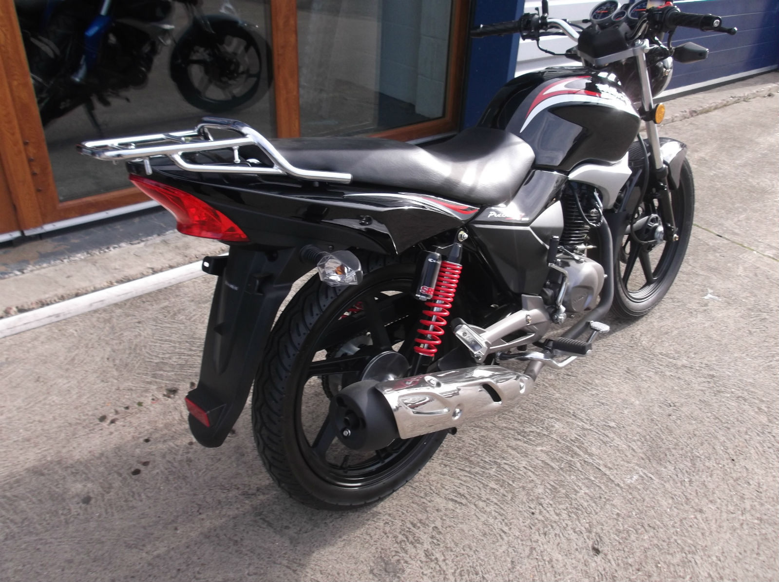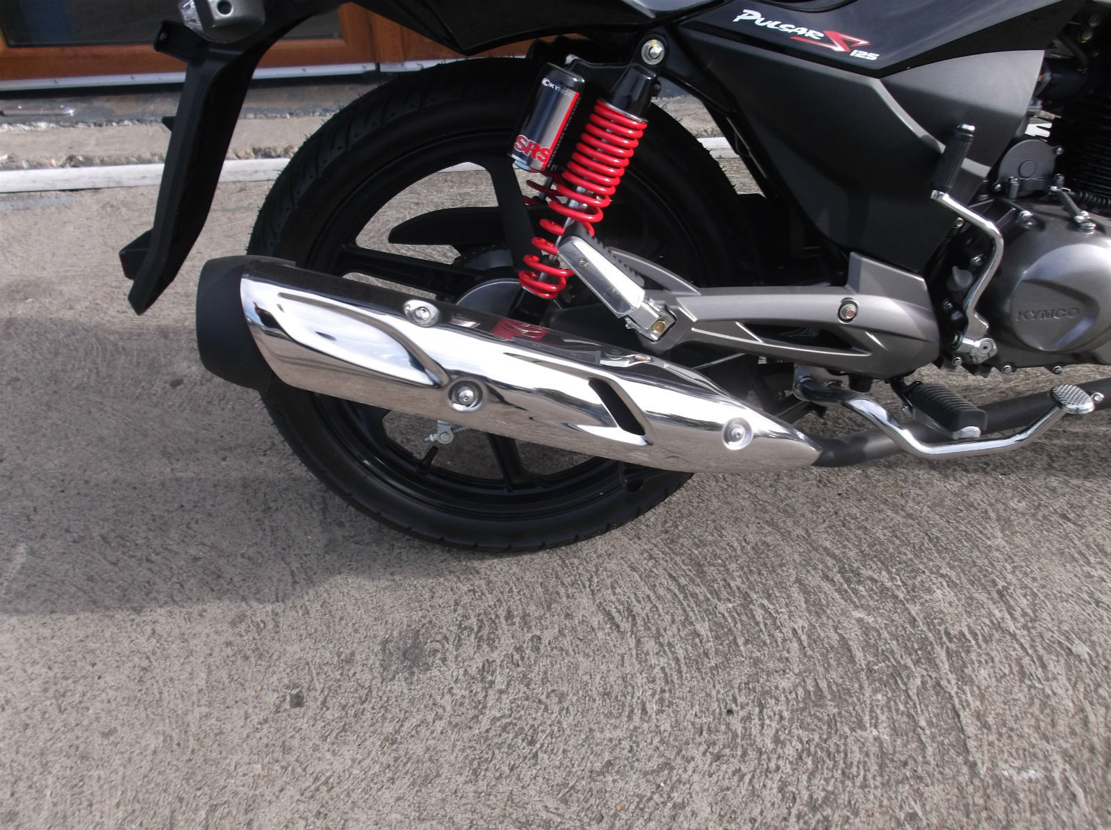 7 Year transferable parts and labour warranty. The initial manufacturer?ˆ™s warranty applies for the 24 month period. During this period. the manufacturer?ˆ™s service intervals and warranty conditions apply. After this period expires. services must be done every 2500 miles or 6 months. whichever occurs first. To qualify for the 7 year warranty the vehicle must be serviced by Peterborough Motorcycles Ltd for the duration of the warranty period from year one through to and including year 7. The Peterborough Motorcycles Ltd warranty will match the manufacturer?ˆ™s warranty along with the manufacturer?ˆ™s exclusions eg reasonable wear and tear or misuse. See warranty book for complete conditions. It does not cover breakdown recovery. KYMCO PULSAR S 125 -This new and improved model has a sleek & stylish design. with a Jet Black or Diamond Red gloss finish. With features such as an analogue rev counter. illuminated gear display. electric and kick start. a generous fuel tank capacity of 16 litres. a light net weight of just 115kg for great manoeuvrability and a relatively low seating position. KYMCO'S NEW PULSAR 'S' GIVES EVEN MOREThe all-new Pulsar 'S' 125 replaces the existing Pulsar Naked and LX models and comes with much sharper styling and an improved technical specification. to offer even more value for moneySince the Pulsar 125 first launched in 2003 it has been providing riders of all ages with an affordable and economical mode of transport. and the new Pulsar S promises to give even more. It is powered by KYMCO's latest fuel efficient 4-stroke air cooled engine. which has a top speed of 65mph and can achieve in excess of 100 miles to the gallon. Not only that. but this model produces the lowest CO2 emissions in its class. at just 0. 83g/km. KYMCO has also added gas assisted rear suspension to the latest spec to further improve rider comfort and cornering stability. KYMCO who have a rich heritage in manufacturing for brands like Honda. Kawasaki & latterly BMW. state that the Pulsar S is one of the best equipped bikes in its price band. Plus. it comes with a trusted 2-year unlimited mileage parts and labour manufacturers' warranty. The Pulsar S is stylish too. as it comes with sleek gloss paintwork. in either Diamond Red or Jet Black. with painted 5-spoke alloy wheels fitted as standard. Additional features include; electric and kick start. digital odometer. illuminated gear indicator. rear carrier rack. steering lock and side and centre stands. 2-Year WarrantyThe Pulsar S comes with a 2-year unlimited mileage manufacturer's warranty. TECHNICAL SPECIFICATIONSEngine Type4 Stroke Air CooledDisplacement CC125Power8. 0 Kw @ 8500 RpmTransmission5 Speed ManualMax Speed65mphFrameTubular SteelTyre Size Front2. 75/18Tyre Size Rear90/90/18Front BrakeDiscRear BrakeDrumLength2010mmWidth735mmSeat Height770mmMPG+100mpgNet Weight115kgFuel Tank Cap15 Litre3 years free legal expense insurance worth £75. We are open Monday to Friday 9 - 6 and Saturdays 9:30 - 4. Sundays 10 - 3Nationwide Delivery Available - Please ring us for a priceAdd £100 to the price for all the on the road charges. including 12 months tax. petrol. DVLA registration fee. L plates and registration plate.