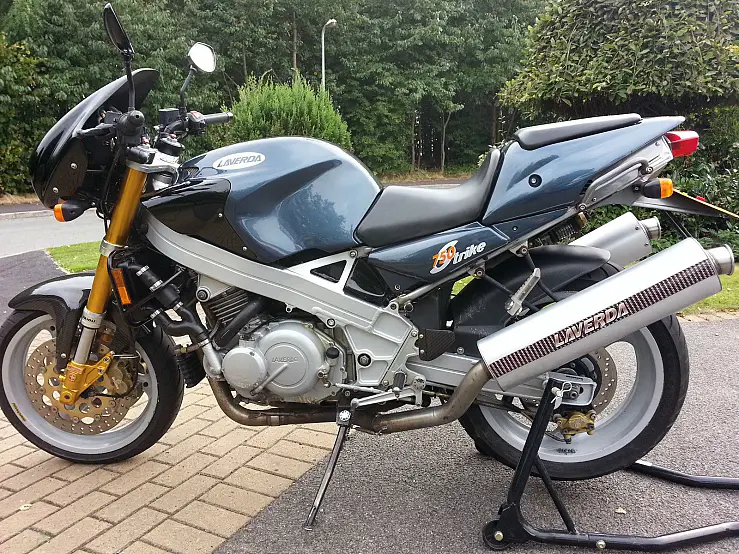Was sold 2 weeks ago. ow re-listing as prospect buyer wisely HPI checked thebike!. t came back very negative !All down to incorrect information on the V5. heinitial dealer only entered 4 of the VIN digits on the log book. s it happens there are 8 other vehicles on finance one of which has been written off sharing these 4 numbers !!. an you get your breath ?Now sold with current HPI check report showing other vehicles on finance and no catagorised insurance claims agianst this vehicle. Thanks Mark i would never have known. This is a Laverda 750 Strike year 2000 which i think is the same as the Ghost model. I have only had this bike a very short period of time . i was expecting a more sedateponderous bike to ride. his however for a 750 twin is extremely quick from the take offand doesn't do so well with the bimbling high gear low speeds that i travel around at !. As can be seen these bikes are dripping with (for the time) high quality components. he handling . suspension and brakes are superb. etter than i am !. The previous owner had a problem with the wiring this has been rectified but there is some signs of burnt plastic on the rear fender and inner mudguard. (shown on pics)The invoice for the repairs suggest a new battery has been fitted but i suspect this isnot the case as the starting becomes lazy after a short time. t's definately not the starter !The tyres are good as are the chain and sprockets. There is a small crack on the front fender caused by the previous owner moving it whilsta disc lock was still in place. To be fussy the engine casings. xhaust hangers and passenger grab rails would benefitfrom powder coating . have tried to show on the pics they are not horrendous but detractfrom the overall general good condition of the bike. MOT'D untill January so the last days of sunshine can be had before worrying about re-testingnext spring. The V5 is in my name but is at DVLA having the full frame and engine numbers added. I am starting the auction off at a sensible figure with no reserve . Buyer is to collect. o over sea's bidders please. Questions through ebay will be answered to the best of my knowledge (as i said i've hadit for a short period of time)(i now know a bit more than i did !!)A £200 deposit via pay pal will be required with in 24hrs from auction close. Cash balance on collection which must be done with in 10 days of auction close. Please bid to buy not waste folk's time. Thanks for looking.