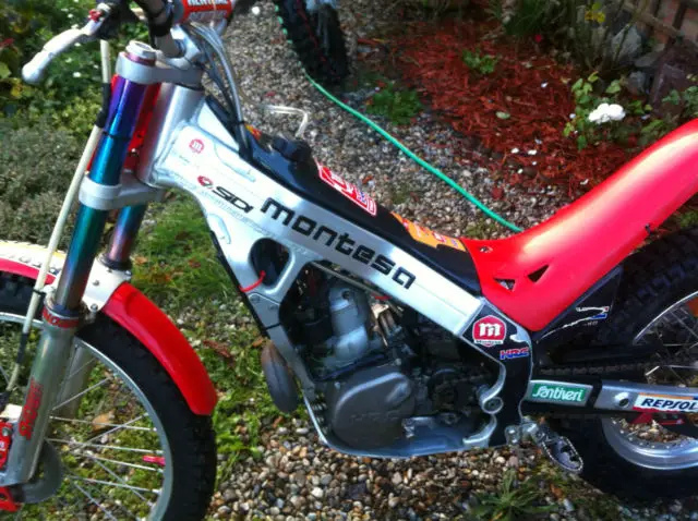 Trials bike montesa 250cc Honda hrc engine. very good condition as you can see. spare mud guards. owned for the past 2 year haven't got the time. very impressive for a early 2000 bike ready to ride needing nothing. worth a look. will only take cash on pick up thanks.