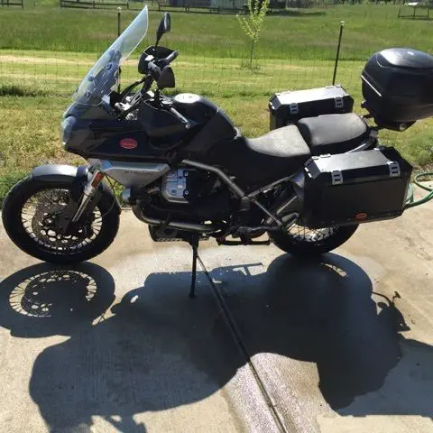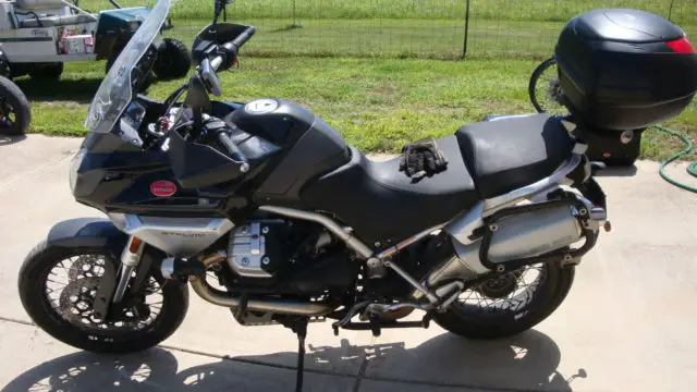 2009 Stelvio with 32,000 miles. 1200cc transverse twin, haft driven. Lots of features including remote storage compartment in tank, djustable windshield, igital display with handlebar controlled multifunction computer with tons of info including volt meter, azard lights, ower socket under seat, ully adjustable suspension, djustable seat height, nbsp;OEM control switch with driving/fog lights, G Traxx Pannier system with Racks, G Stelvio Engine Crashbars, MG Euro Front Turn Signal kit with MG Sport mirrors. Bike comes with both keys, ool kit and all manuals.