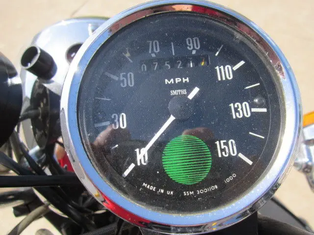This is a nice mostly original bike with original paint, eat, tc. The Amal carbs were serviced sometime ago. The bike will need a little TLC (tune up) most likely as it has been stored in a climate controlled warehouse with an extensive collection of bikes. Mileage of 7,520 is the original miles. Reserve price is $6,500.