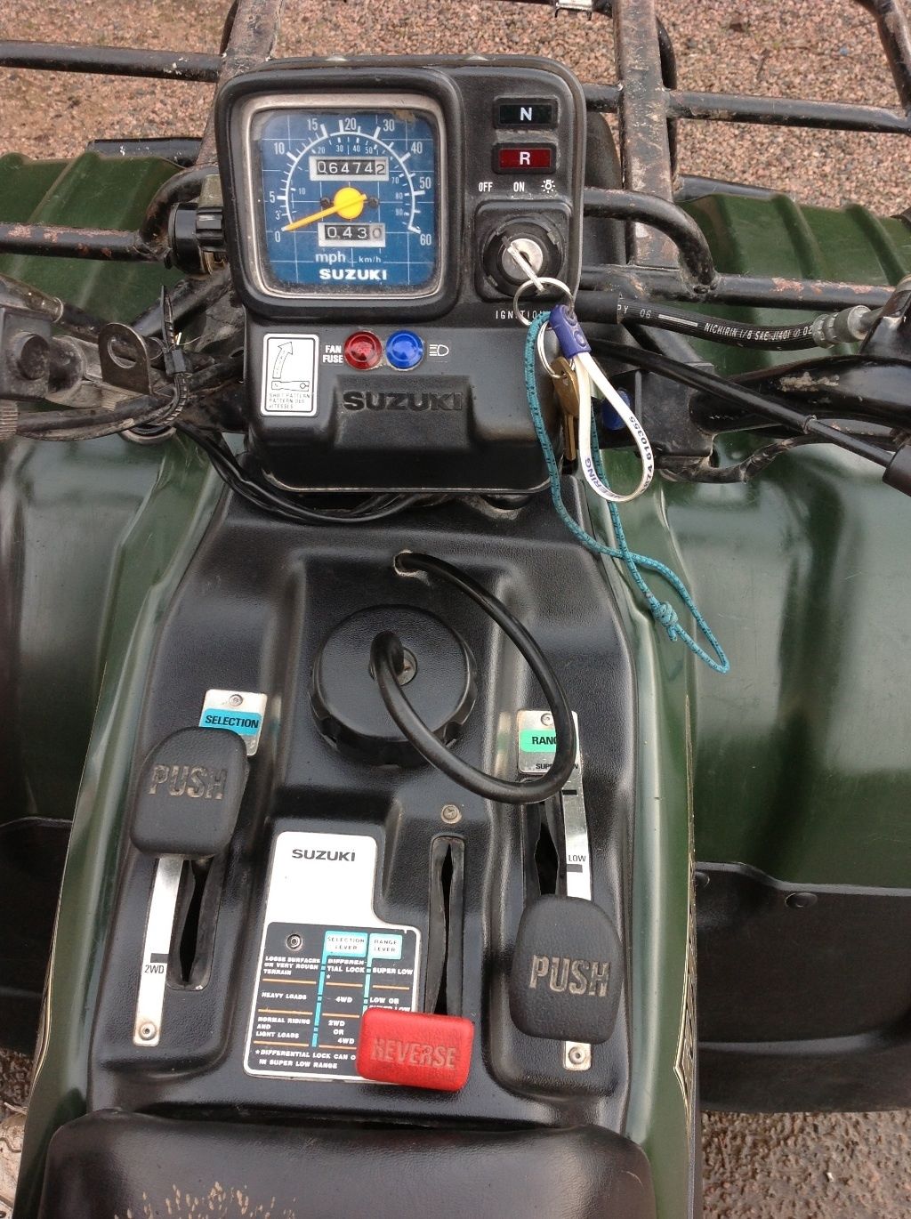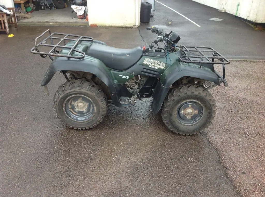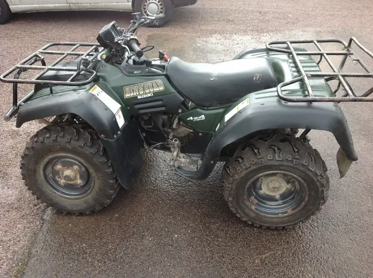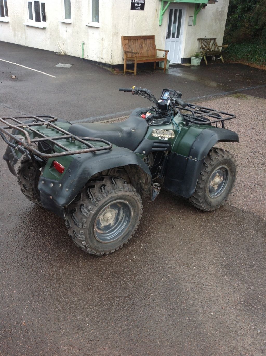 Suzuki King Quad 300 great all round bike and very reliable. Has electric start and back-up pull start. 5 forward gears 1 reverse gear. 4wd and 2wd. high and low settings. lights. tow bar. new battery. good tyres. Starts first time. runs and drives well. very strong quad bike. Happy bidding!