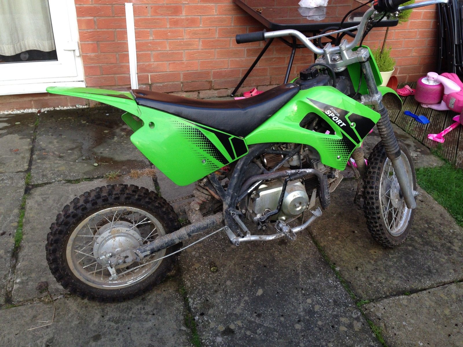 110 Pit Bike (imported)Great little dirt bike. nbsp;had loads of fun on this. used to take my two and a half year old little girl on this till mum made me stop because she was enjoying it to much and we were getting to fast :)I got this Bike from the original Importer and he had it strengthened so his son could start going over jumps safely with no worries about metal fatigue. Ive rode this thing all over the Peak district with no problems when we lived there. nbsp;anyone who's been up and down those rocky paths knows exactly what this bike is capable off :)Starts easy. you have to play with the choke a little till she gets warm but then she is no problems at all. My mate says i should tweak the carb a little and it will run spot on but i never did as i didn't really know what i was doing and it was just as easy for me to ride. warm her up and close the choke upSo happy bidding. The winner will love it. Collection only Bawtry. Ive had it in the back of a VW Touraeg and may consider delivering very local at the cost of Diesel but that could be sorted after the auction.