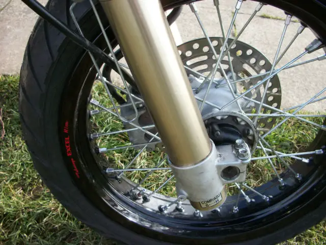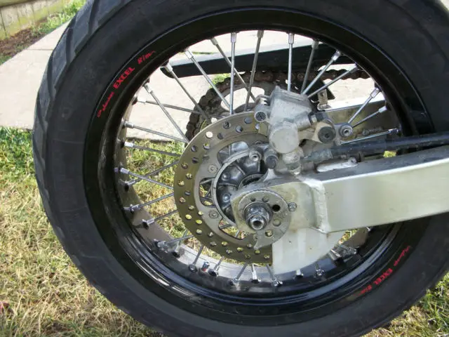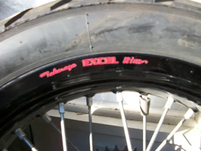 THE SUPER MOTO WHEELS (EXCEL) ON THIS BIKE ARE IN FANTASTIC CONDITION. IN GLOSS BLACK WITH RED DECALS.