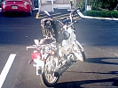 GARAGED MOTOR BIKE WHILE IN STORAGE COMES WITH NEW MICHELIN (2. 75 X 17) FAT NYLON TIRES AND NEW SPARE 2. 50 X 17. A NEW BATTERY 18 MONTH NO QUESTIONS ASKED WARRANTY. 2 BLACK HELMETS DOT APPROVED (1 HALF WITH SILVER FLAMES & 1 FULL WITH FLIP UP CLEAR VISOR). A CHROME FLEUR DE LIS BAR SUPPORTING A BACKREST THAT CAN BE REMOVED AND PLACED ON REAR RACK INSTEAD OF AN EXTRA BLACK LUGGAGE CASE WITH KEY LOCK FOR HELMET. ID AND TOOLS (CENTER RACK ALSO REMOVABLE). A NEW BLACK WATERPROOF COVER FOR ENTIRE CYCLE. AND MANY EXTRA PARTS.